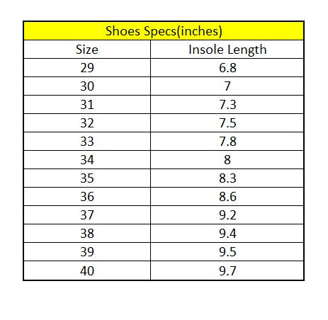 For Shoes: Please allow 0.2 inch +/- tolerance due to manual measurement.