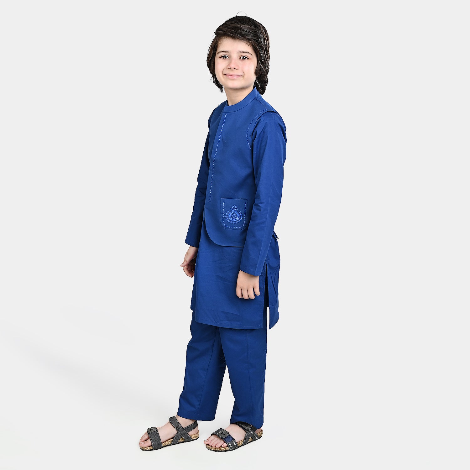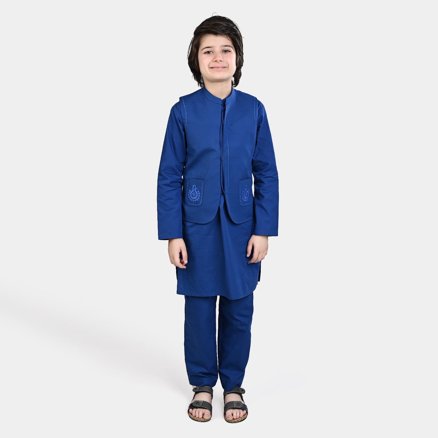 Bachaa Party brings you the best price Boys Cotton Poplin 3 Piece Suit (Front Pocket)-BLUE with express shipping all over Pakistan.