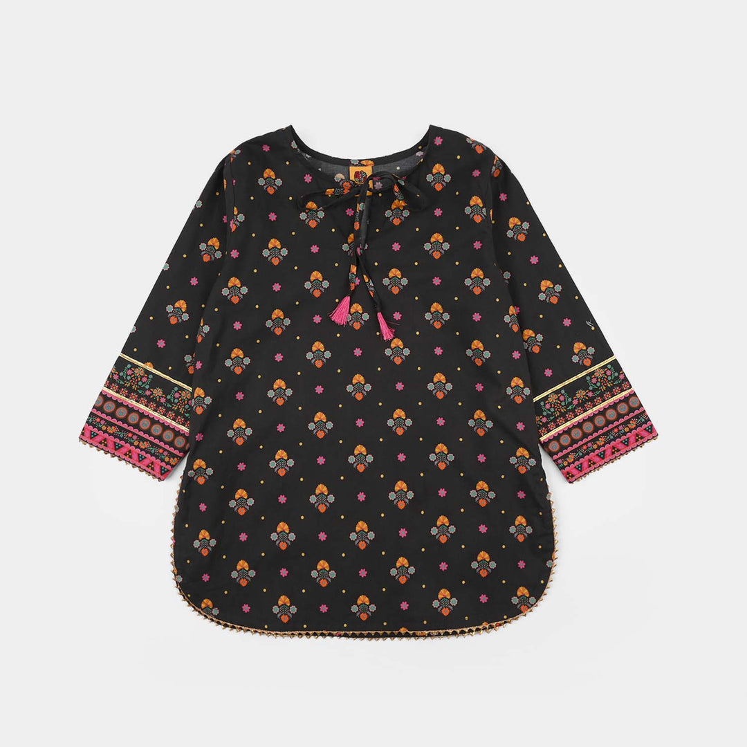 Girls Poly Cambric Printed Kurti Black Funk - BLACK