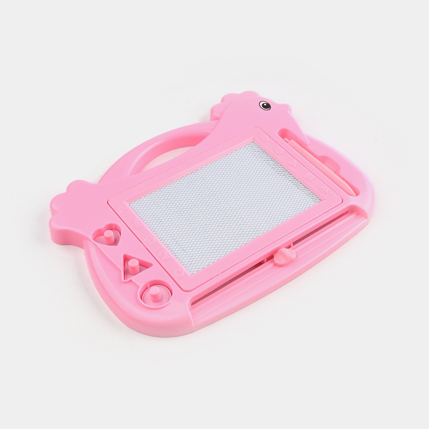 This magic toy board/slate, equipped with a magnetic drawing surface provides endless opportunities for creativity and exploration. Use the included magnetic stylus to draw, write, and doodle, and then slide the eraser bar to clear the board and start new.