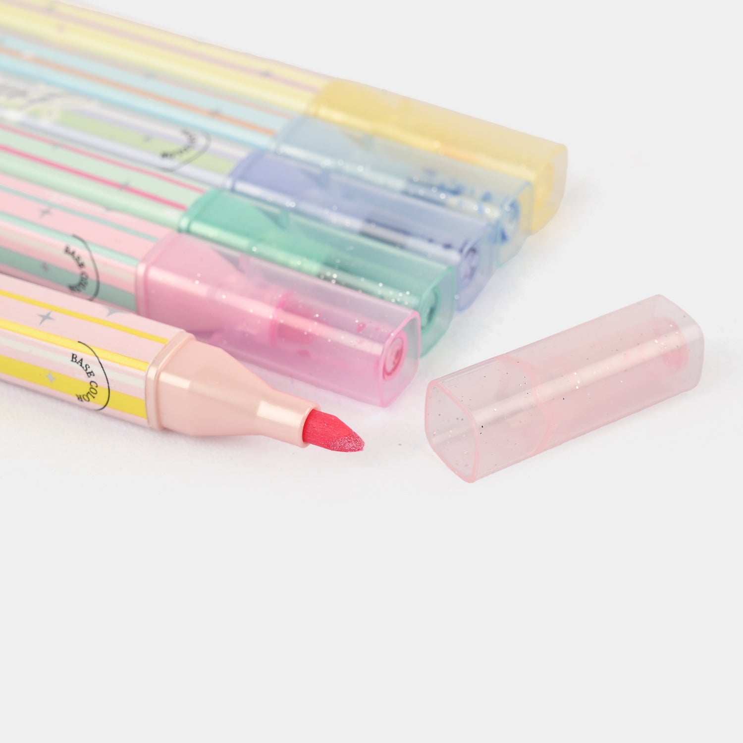 Elevate your notes, planners, and creative projects with this 6-Color Pastel Glitter Highlighter Set. Each highlighter delivers smooth, vibrant pastel ink enhanced with a subtle shimmer, giving your pages a soft, aesthetic glow.