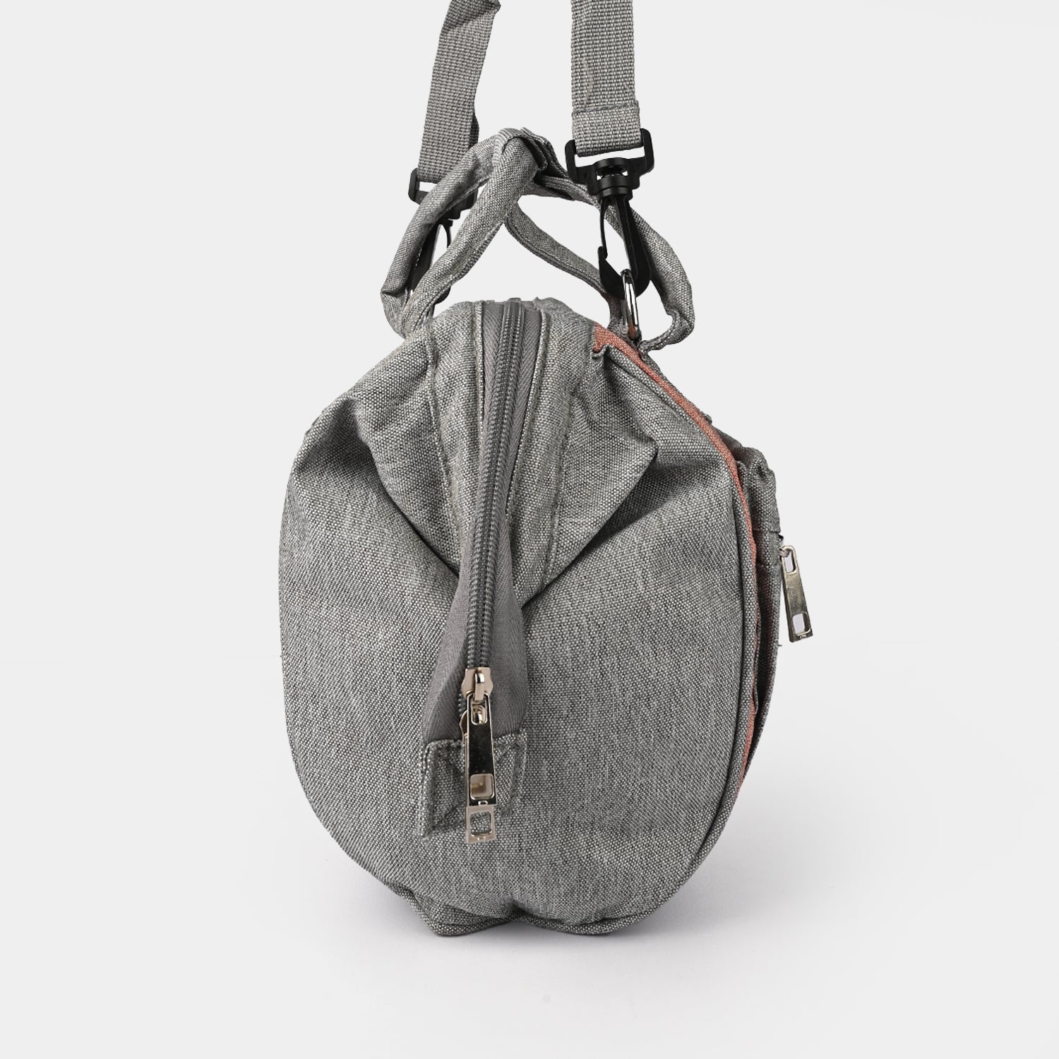 Our Two-Tone Premium Mother Bag with durable fabric in grey and peach combines durability with style. Designed for modern moms, it offers practical organization for everyday essentials.