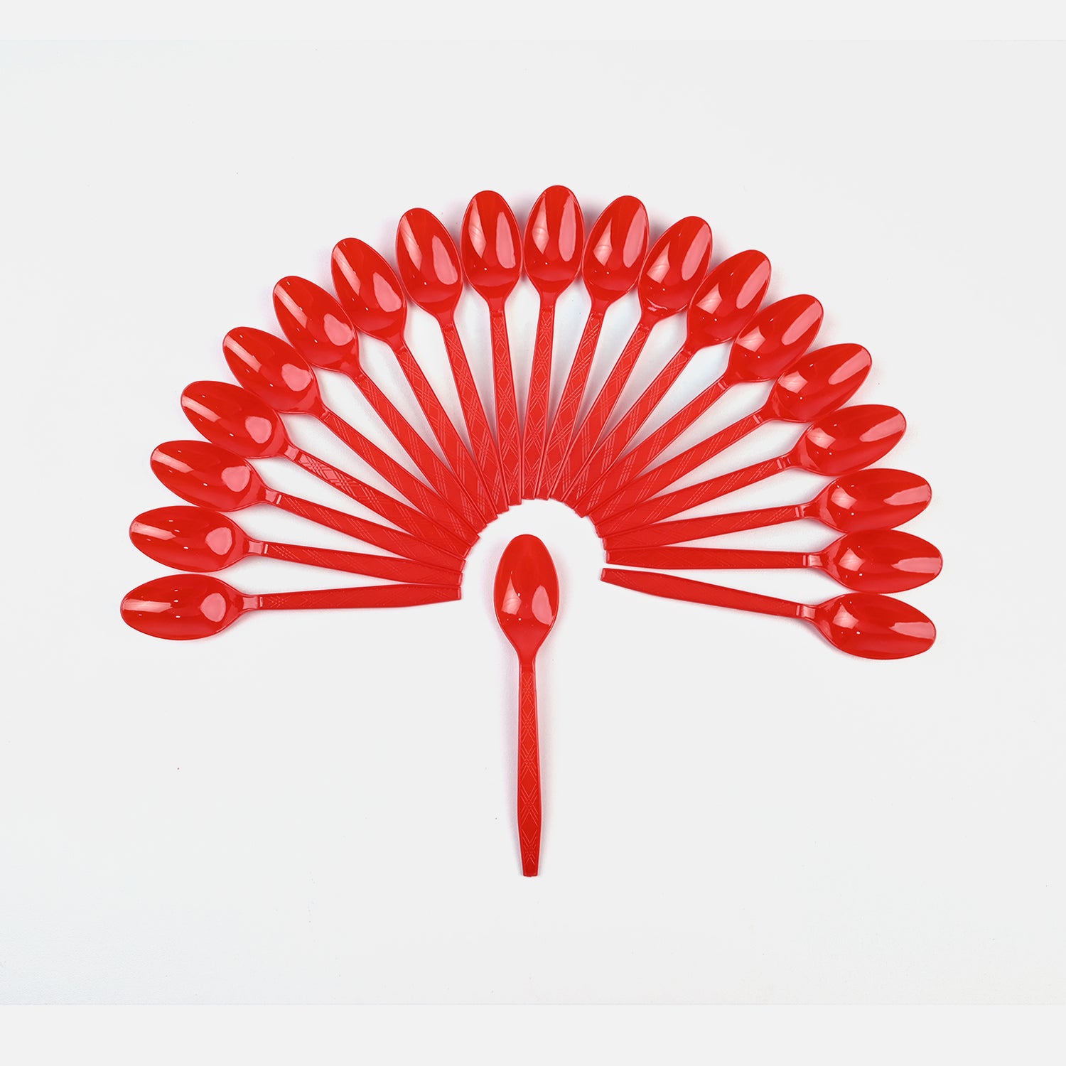 20-piece disposable plastic spoon set ideal for parties and events. Economical, lightweight, and requires no cleanup. Best for cold foods.