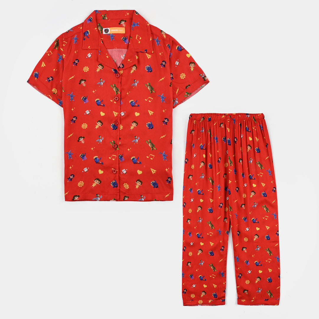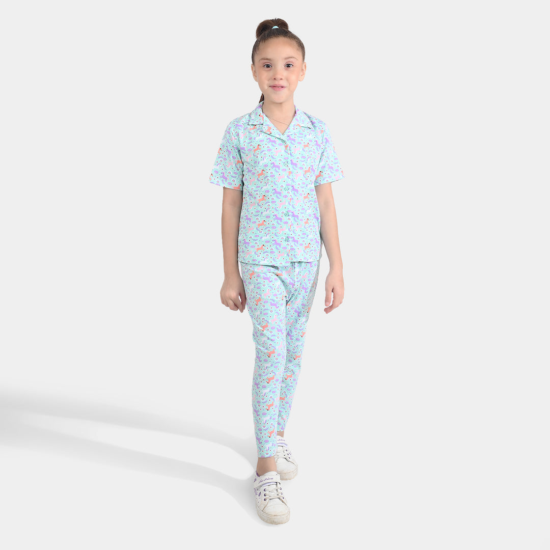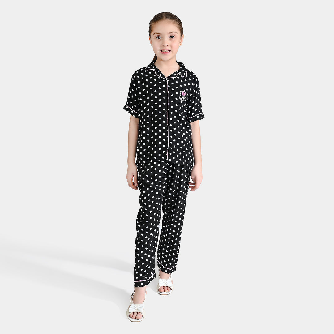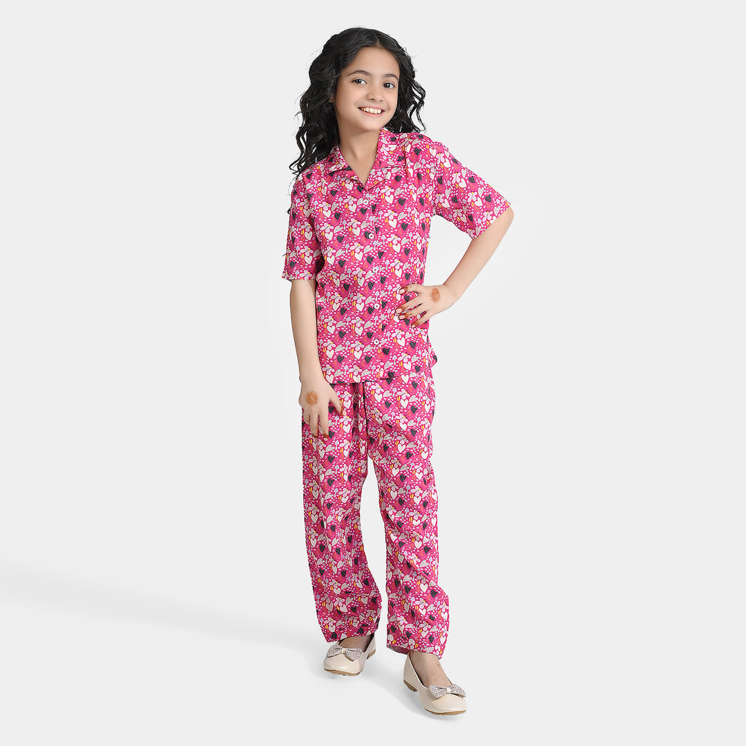 Girls Viscose Nightwear Suit Printed Stitch-Multi