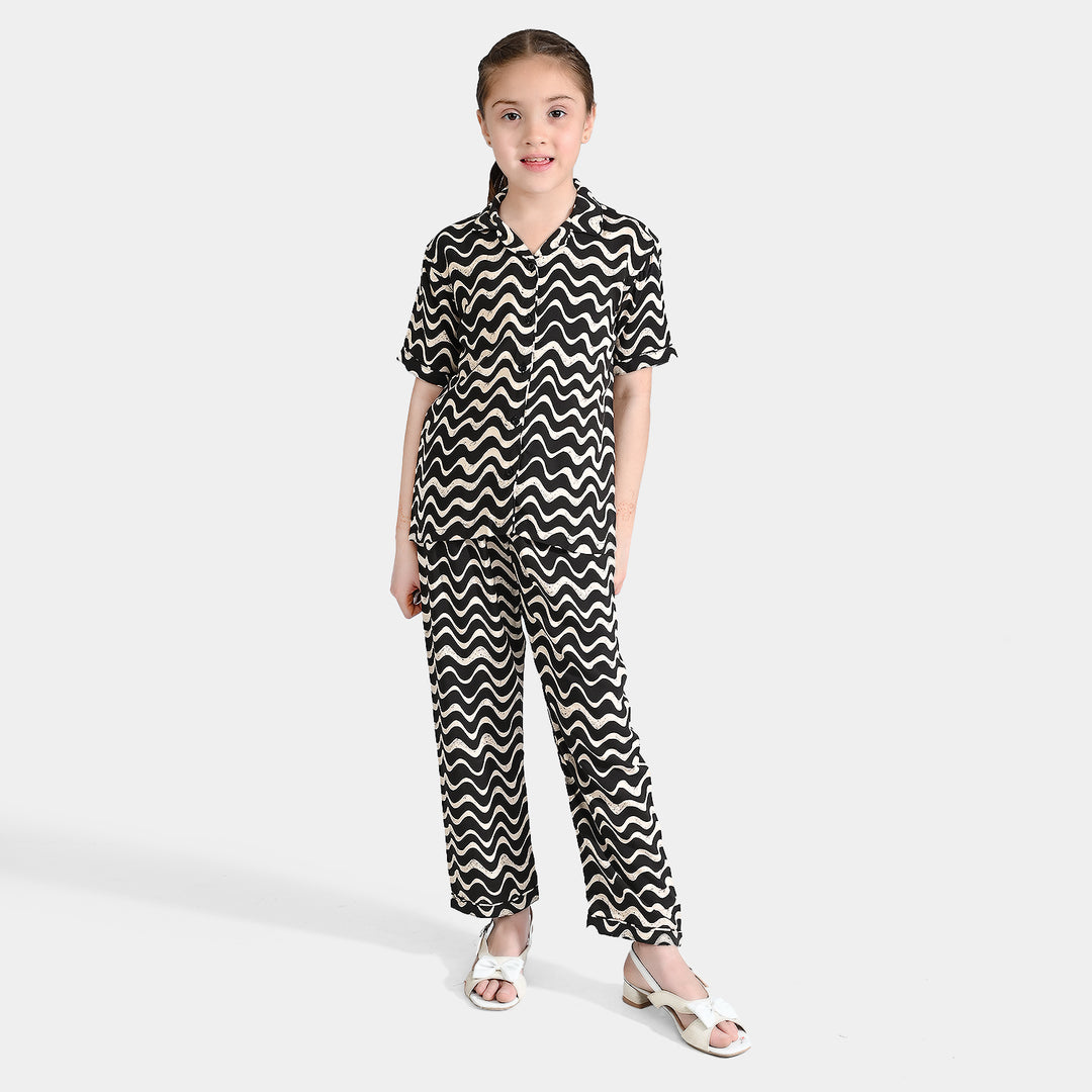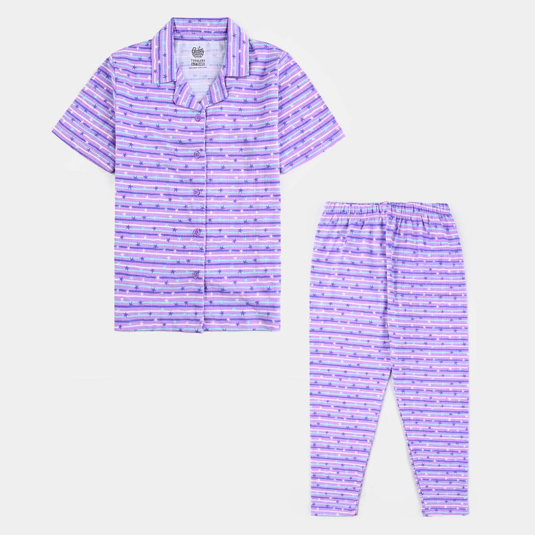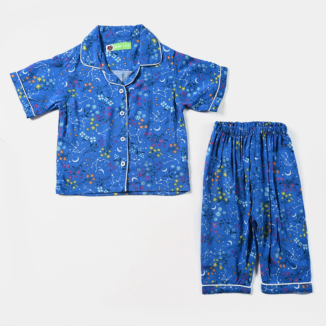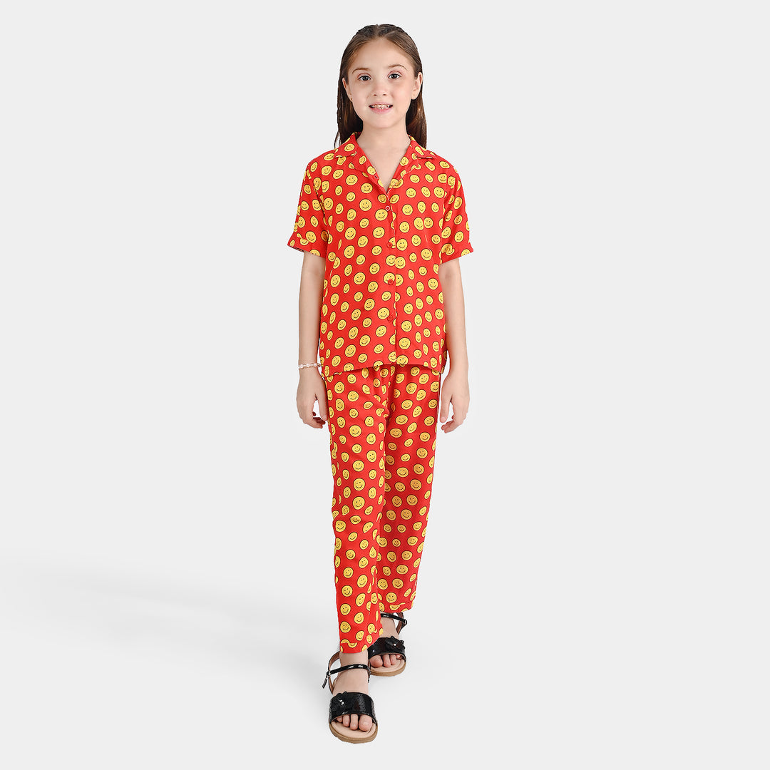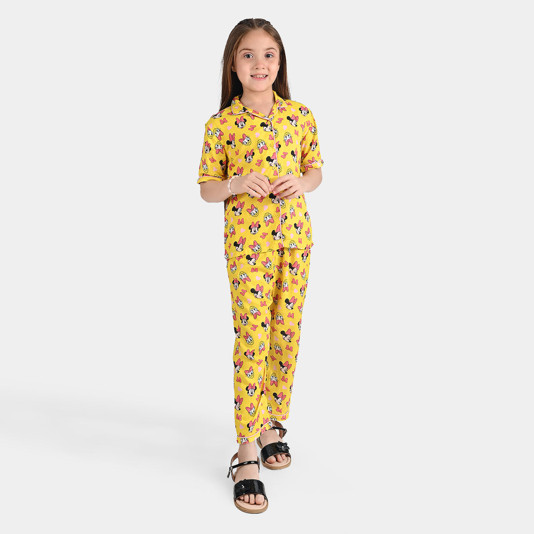 Girls Viscose Nightwear Suit Printed Stitch-Multi