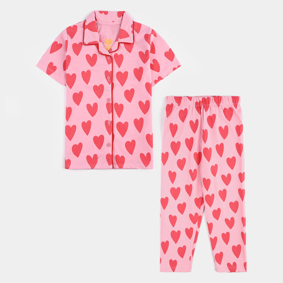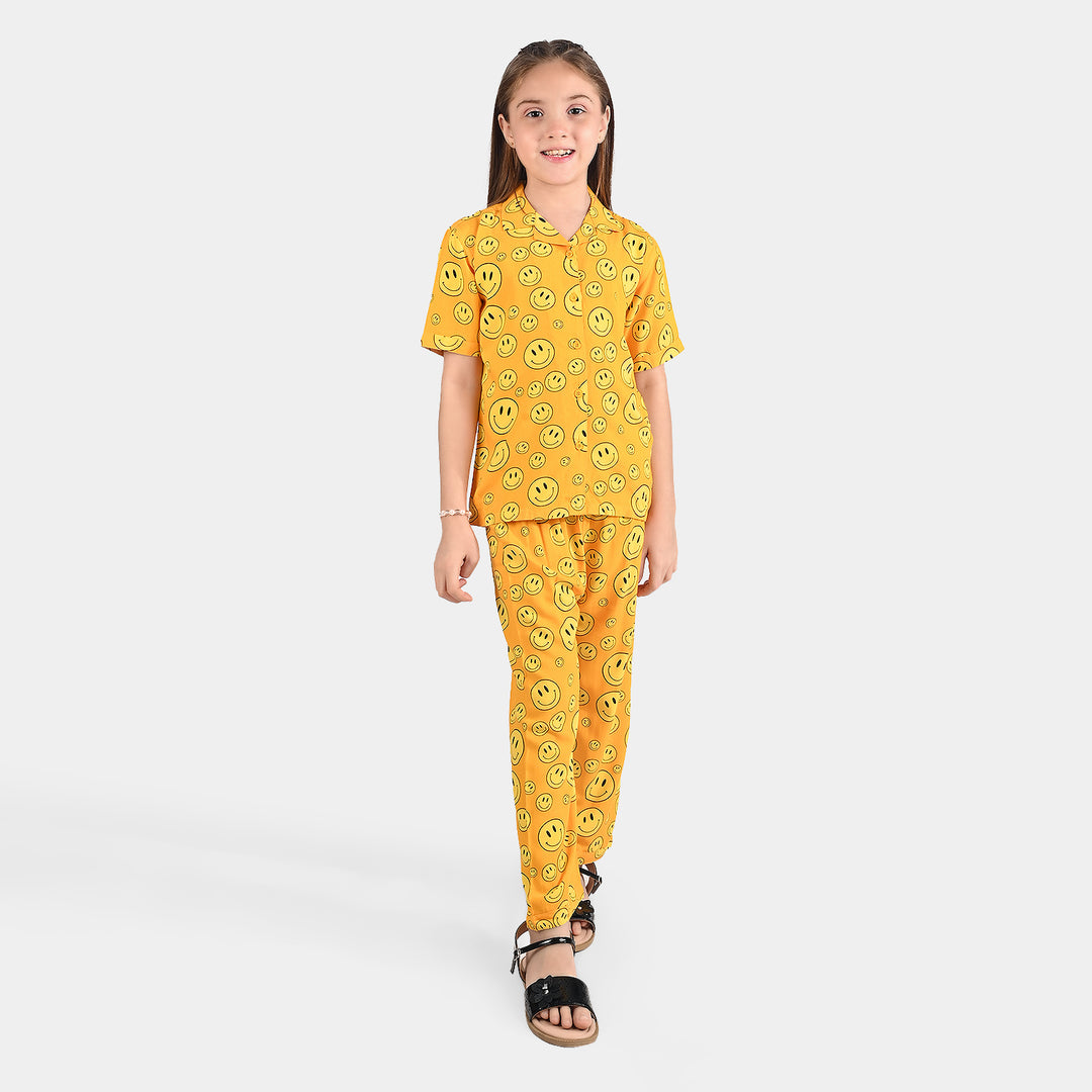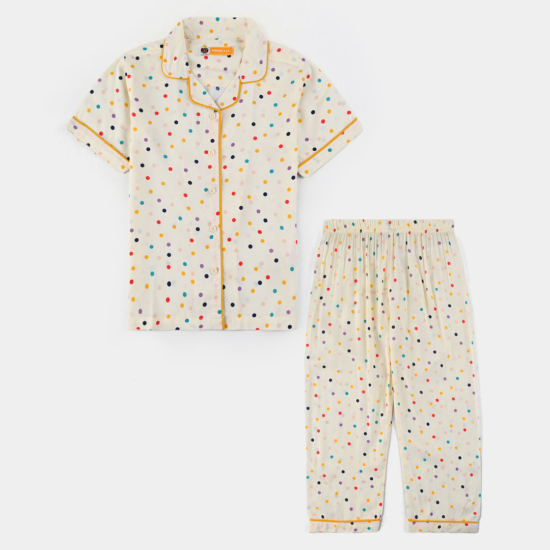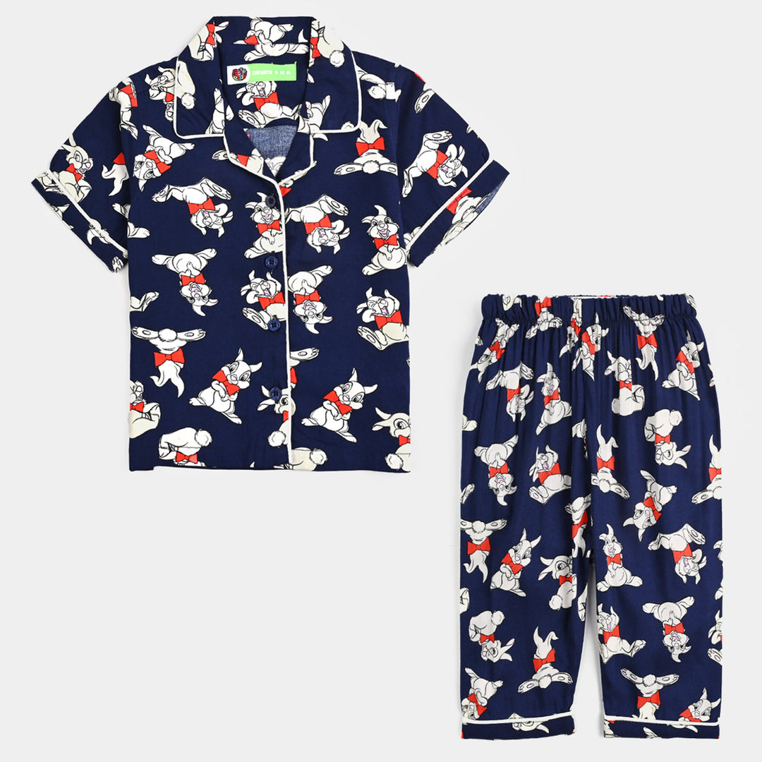 Girls Viscose Nightwear Suit Printed Stitch-Multi