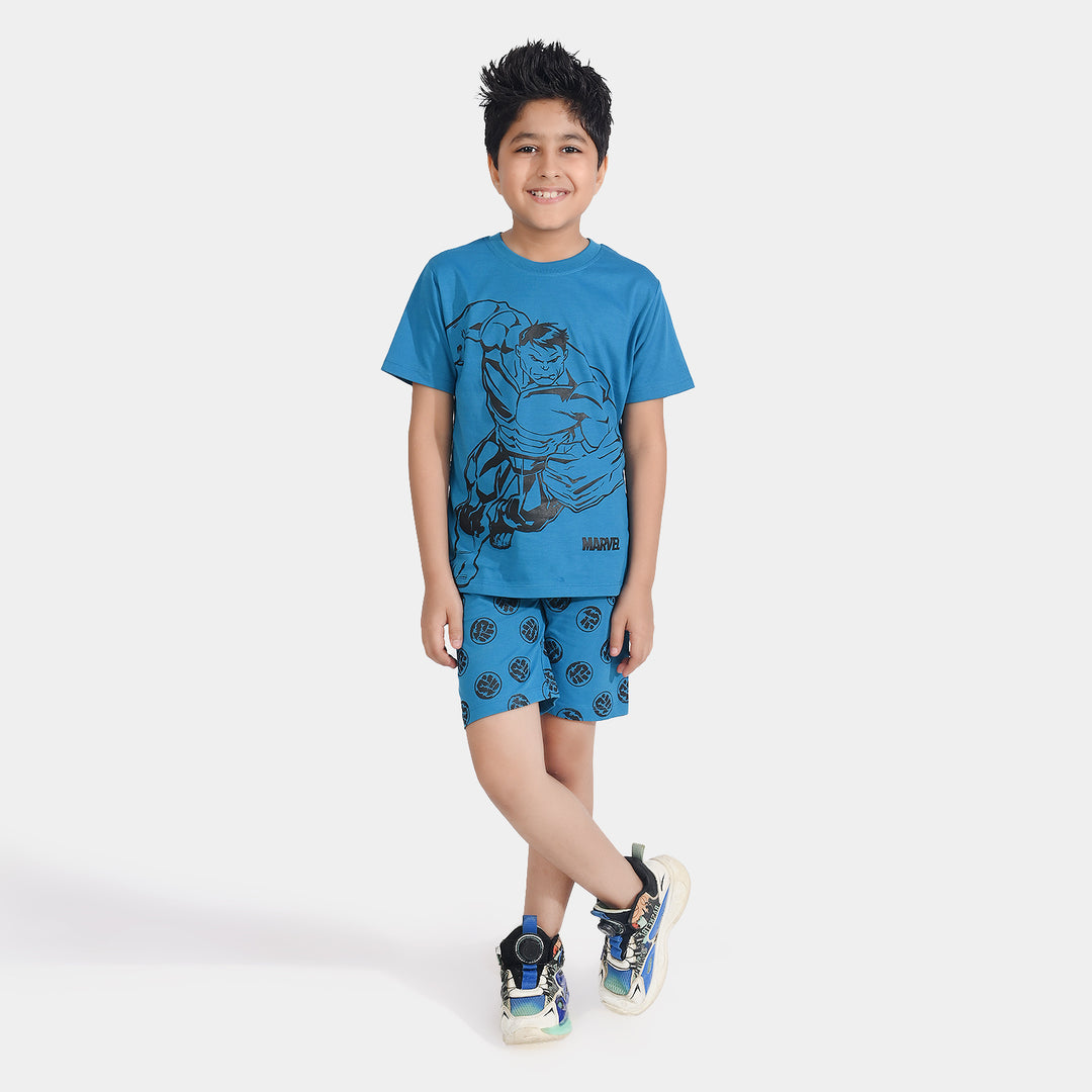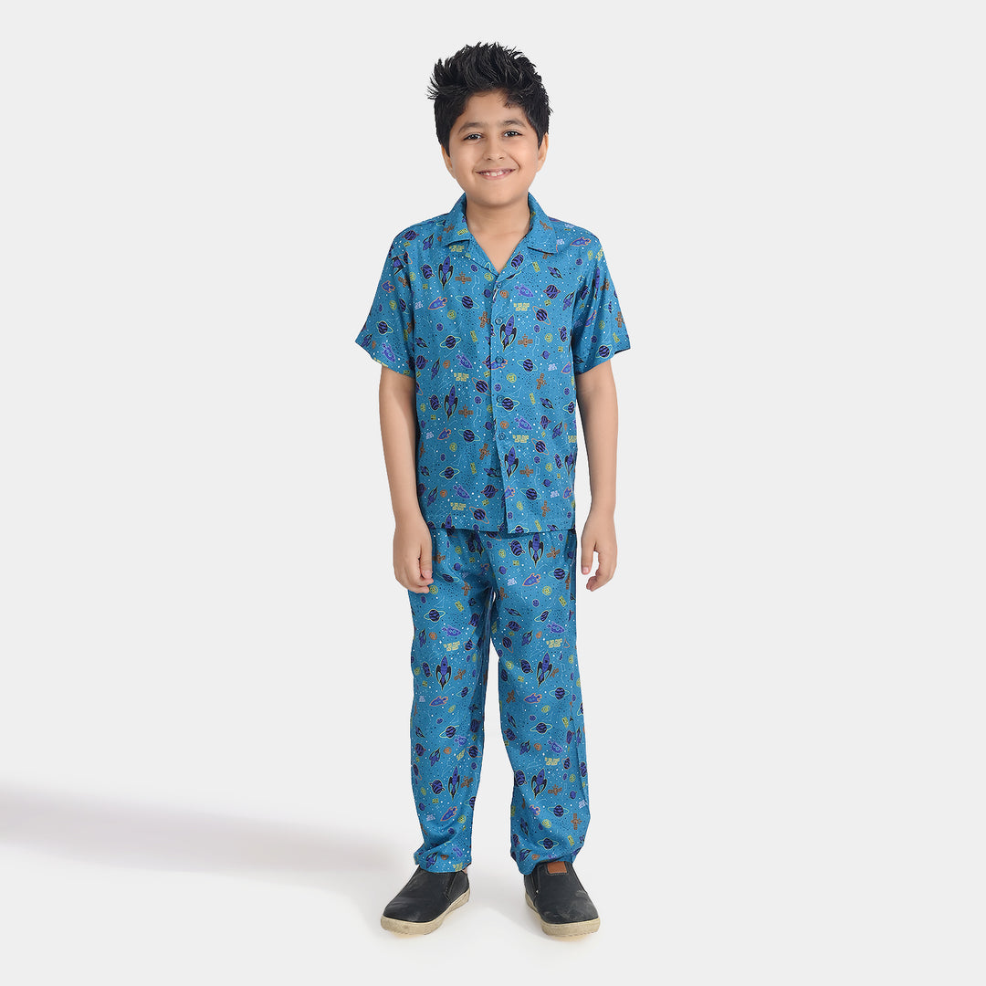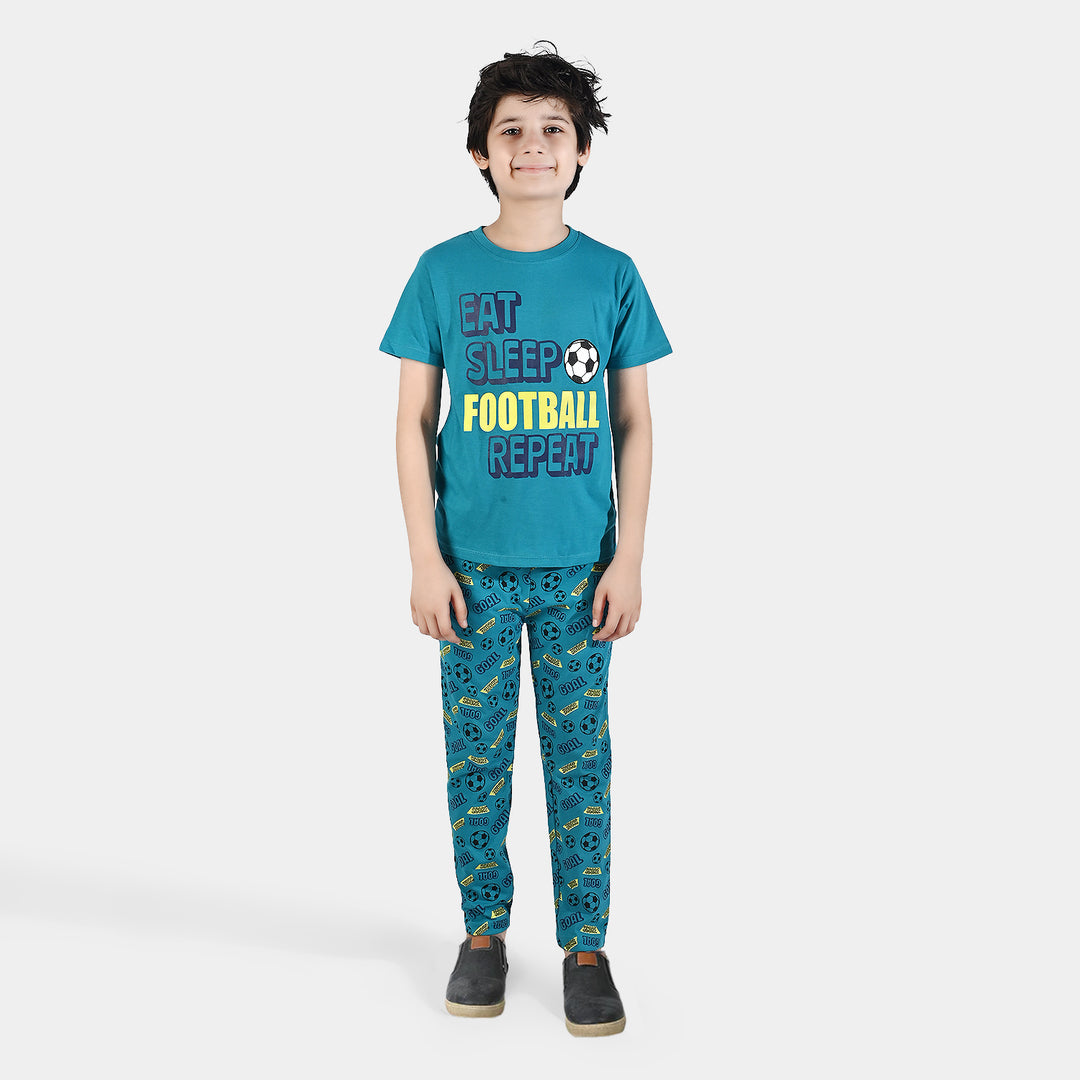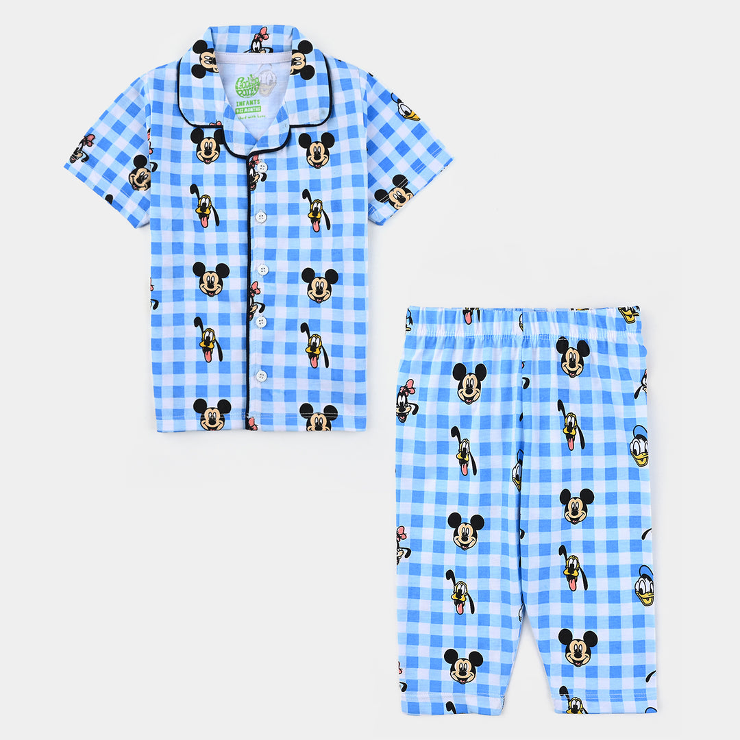 Infant Boys Poly Cotton Jersey Night Suit-Navy Blue