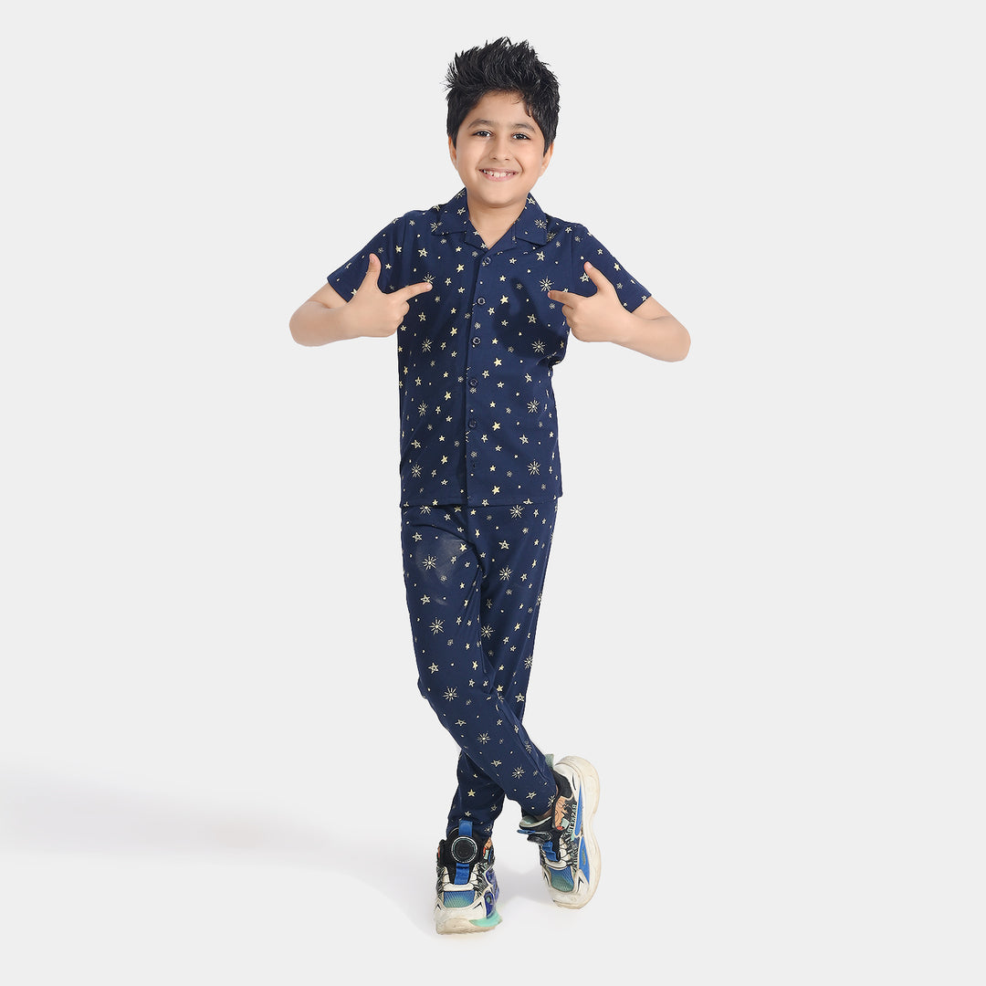 Boys PC Jersey Nightwear Allover Stars-Navy Blue