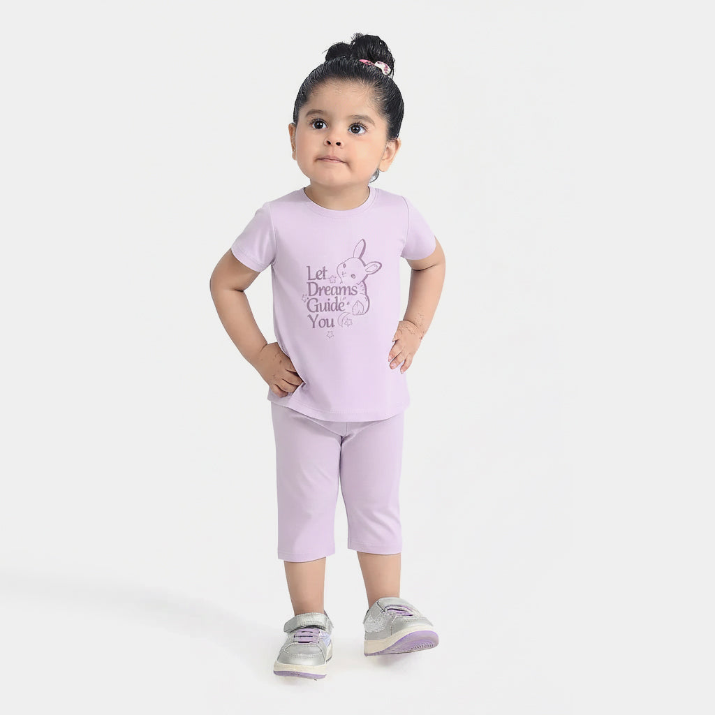 Infant girls jersey night-suit featuring a front-printed “Let Dream Guide You” design, half-sleeve round-neck shirt, and matching trousers for comfortable sleepwear.