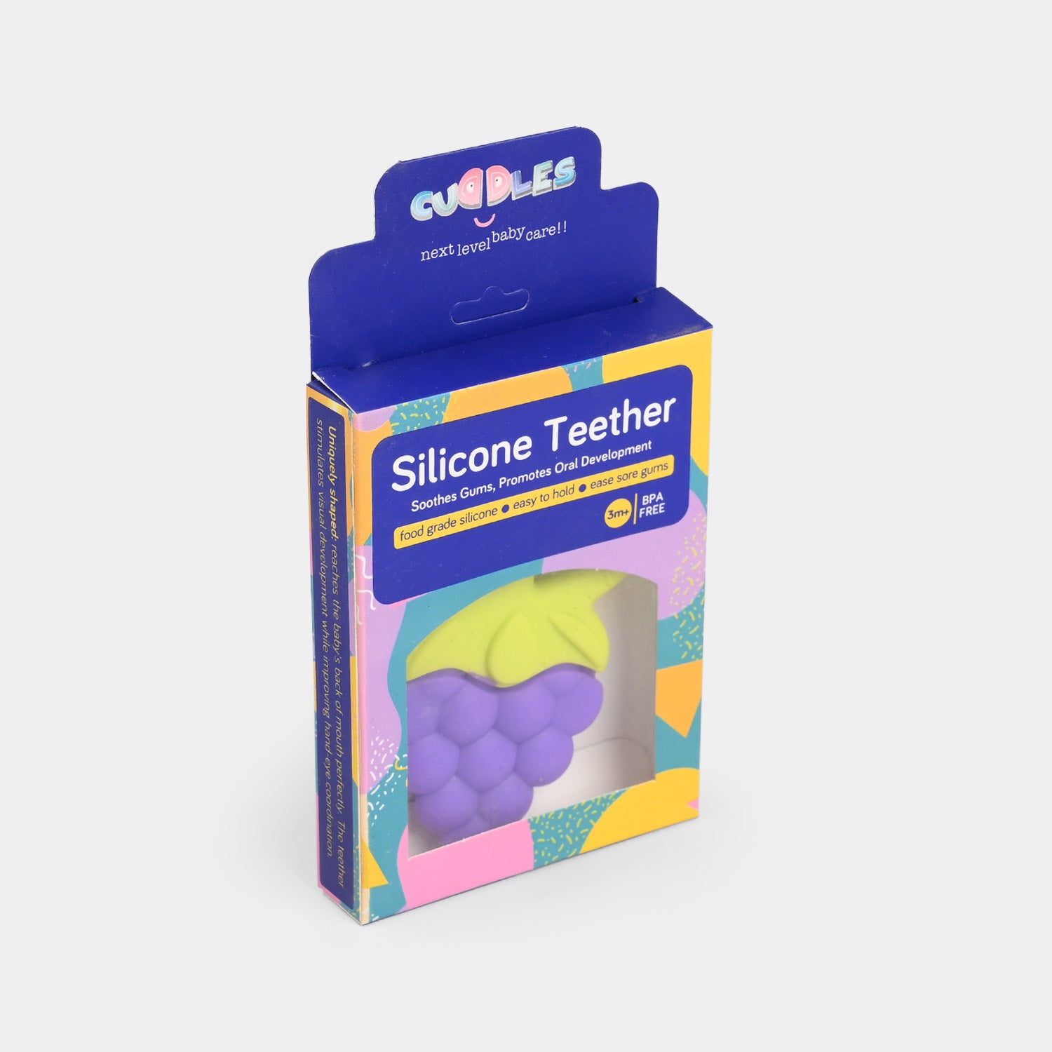 This teether soothes your little one's teething discomfort by providing gentle relief to sore gums. Features easy-to-grip handle that is perfect for little hands to hold onto.