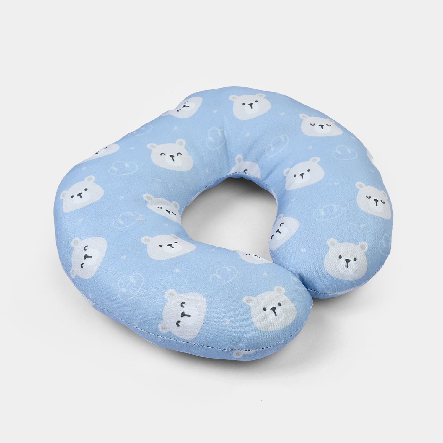 Blue nursing pillow designed to provide comfortable support for both mother and baby during breastfeeding, reducing strain on the back and arms.