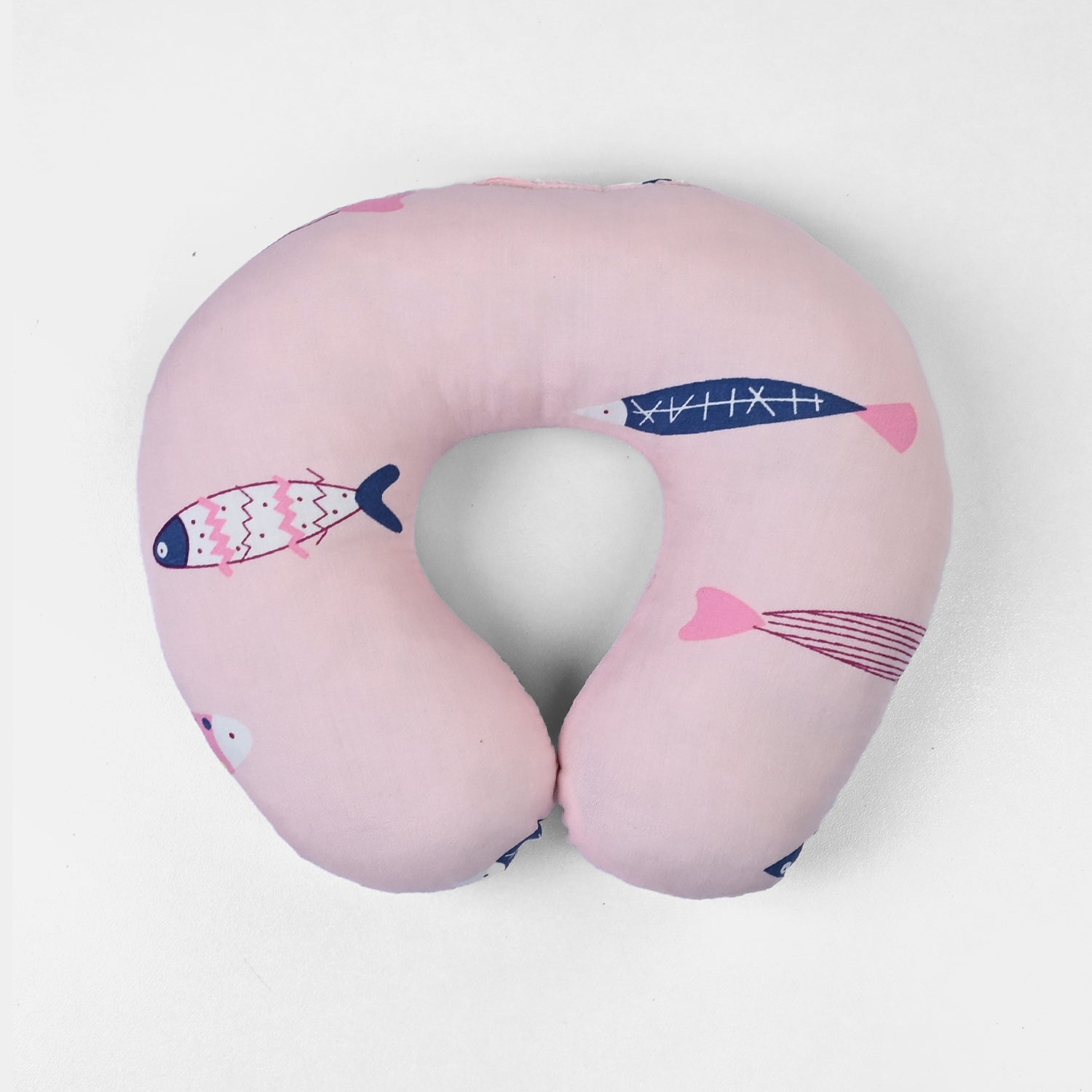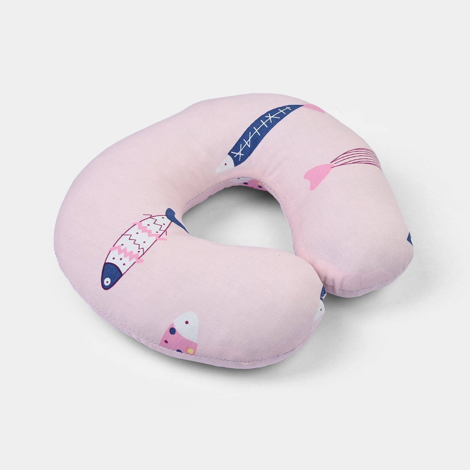 Pink nursing pillow designed to provide comfortable support for both mother and baby during breastfeeding, reducing strain on the back and arms.