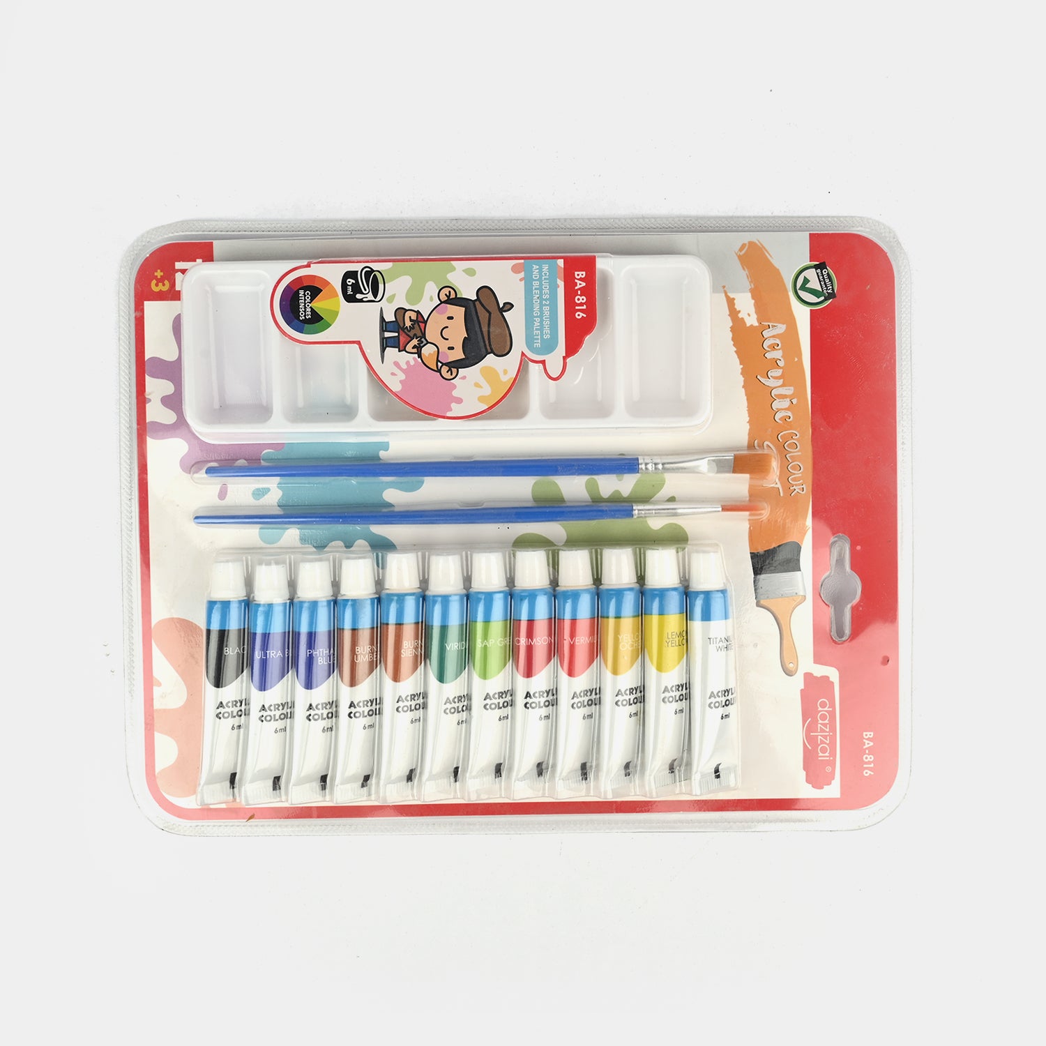 Acrylic Colour Painting Set with Brushes & Mixing Palette 12