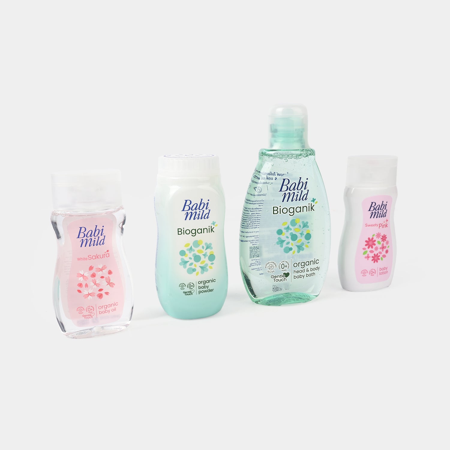 Gentle baby care essentials in one thoughtful set. This four-piece collection features Baby Lotion, Baby Oil, Head & Body Bath, and Baby Powder—all formulated with natural, organic ingredients that are hypoallergenic and dermatologically tested for your newborn's sensitive skin.