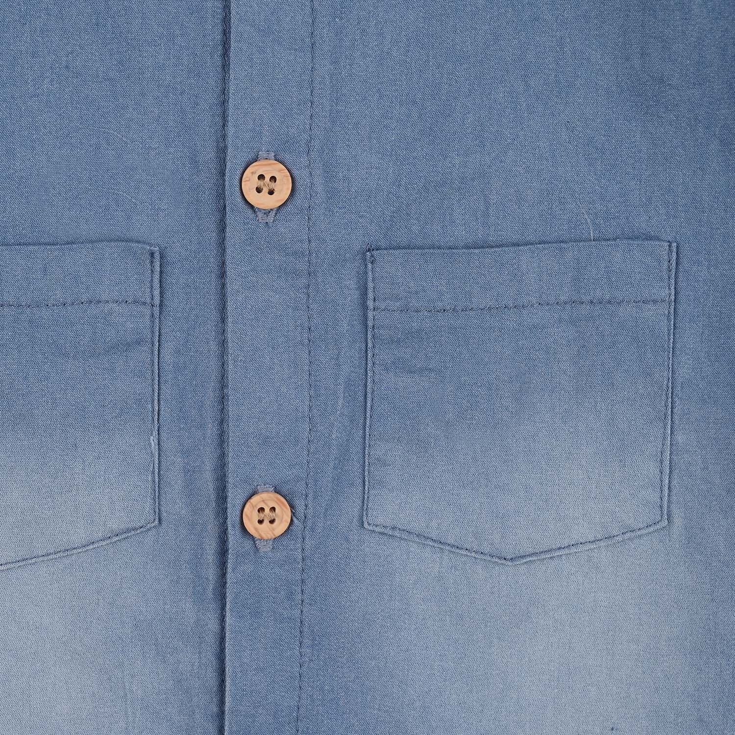 Infant boys' blue denim romper featuring a collar, front opening, pockets, and pumpkin embellishment, perfect for a stylish and comfortable everyday look.