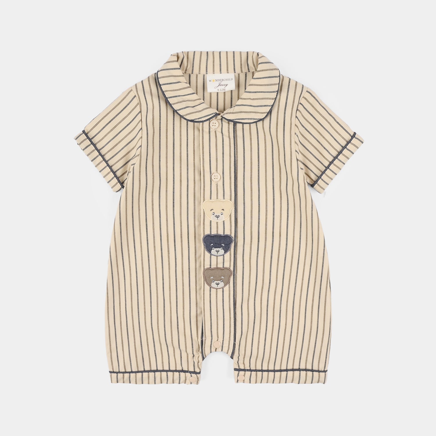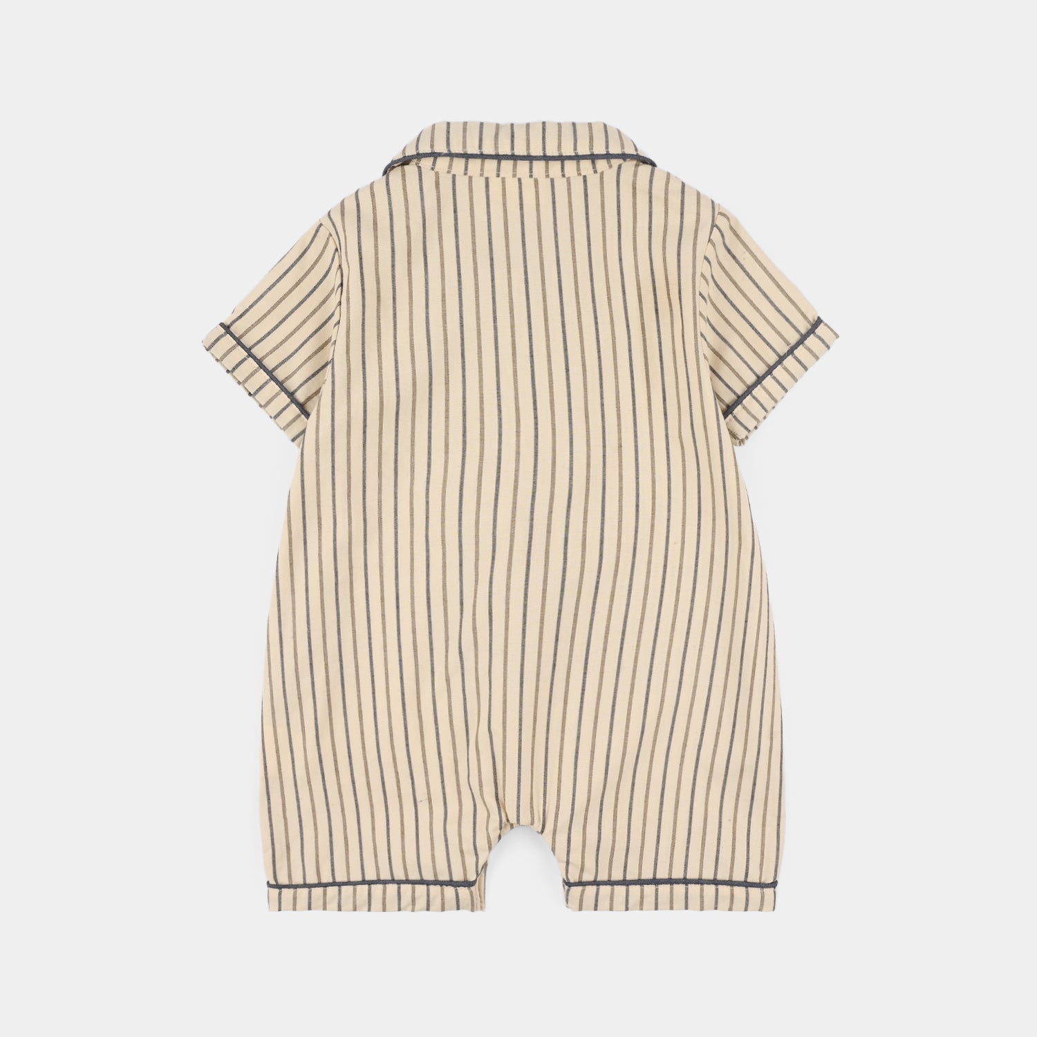 Infant boys' beige romper in soft jersey fabric featuring half sleeves and a comfortable fit, perfect for a cute and easy everyday look.