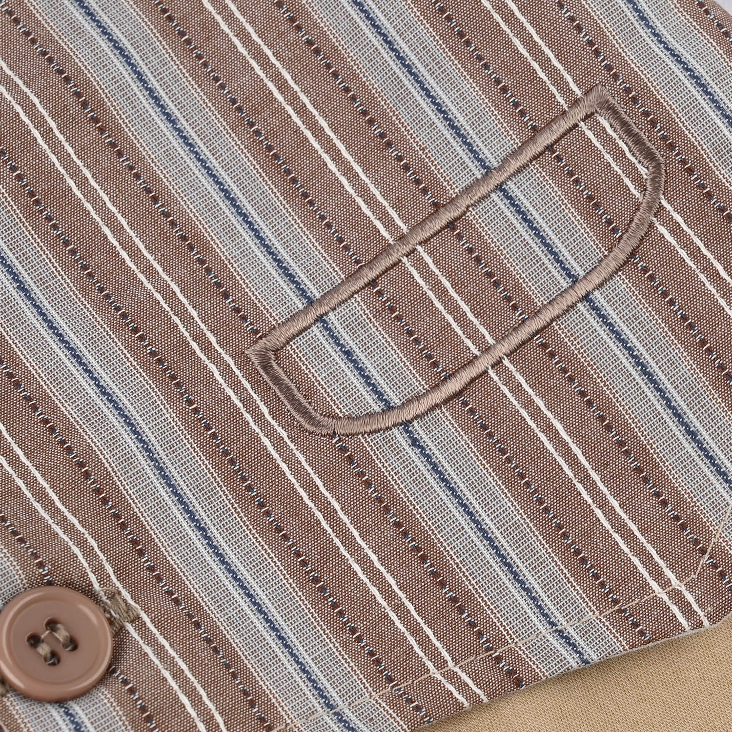 Infant boys' beige jersey/terry romper styled like a white shirt with collar and bow tie, featuring attached waistcoat detailing and snap button closure, perfect for a smart and comfortable festive look.