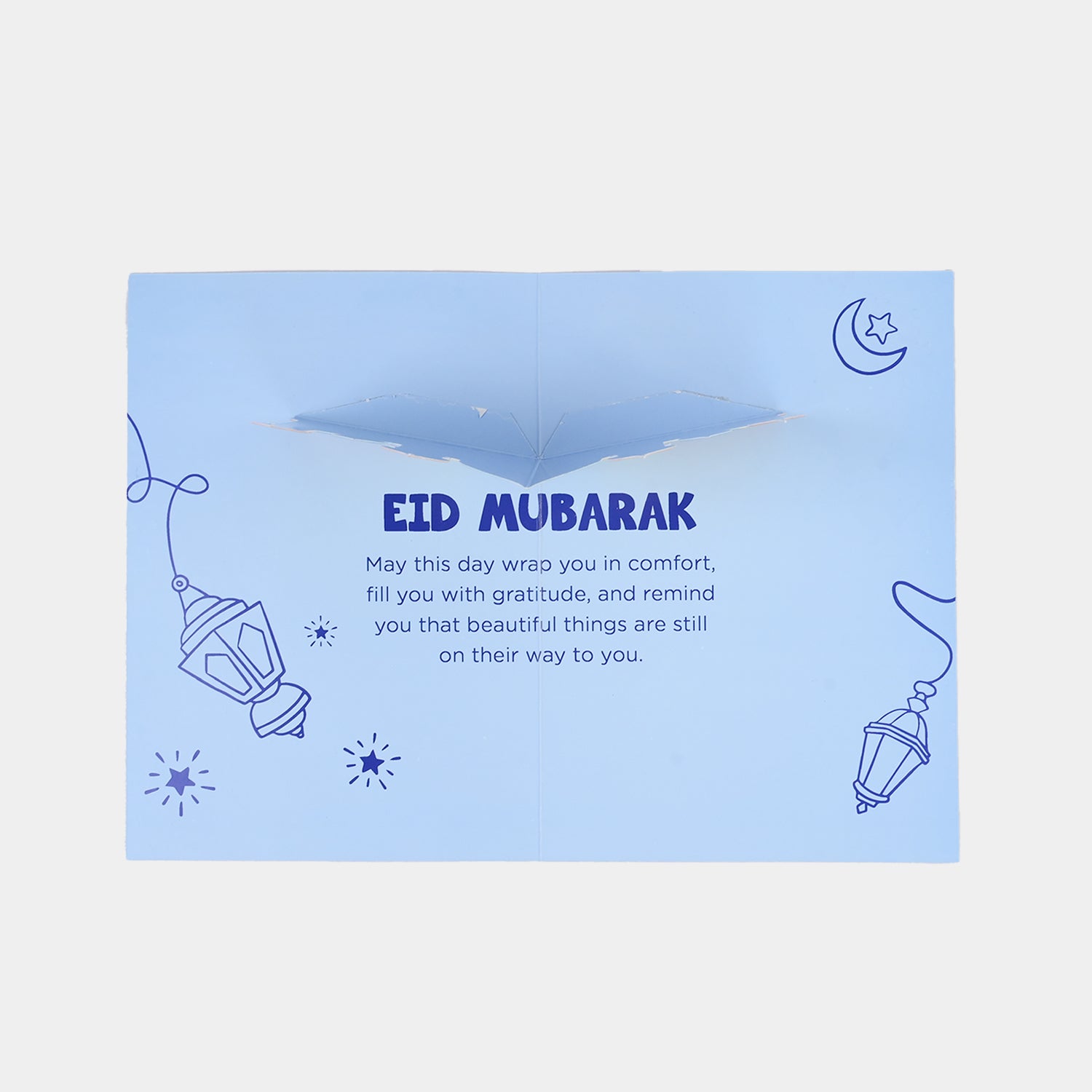 Celebrate Eid with this vibrant Eid Mubarak Card, perfect for sharing festive greetings with loved ones. Crafted with premium quality materials and impeccable finishing, this card makes an ideal gift for kids and a thoughtful keepsake for the occasion. Featuring bright, cheerful designs that capture the spirit of Eid, it's ready to brighten someone's special day.