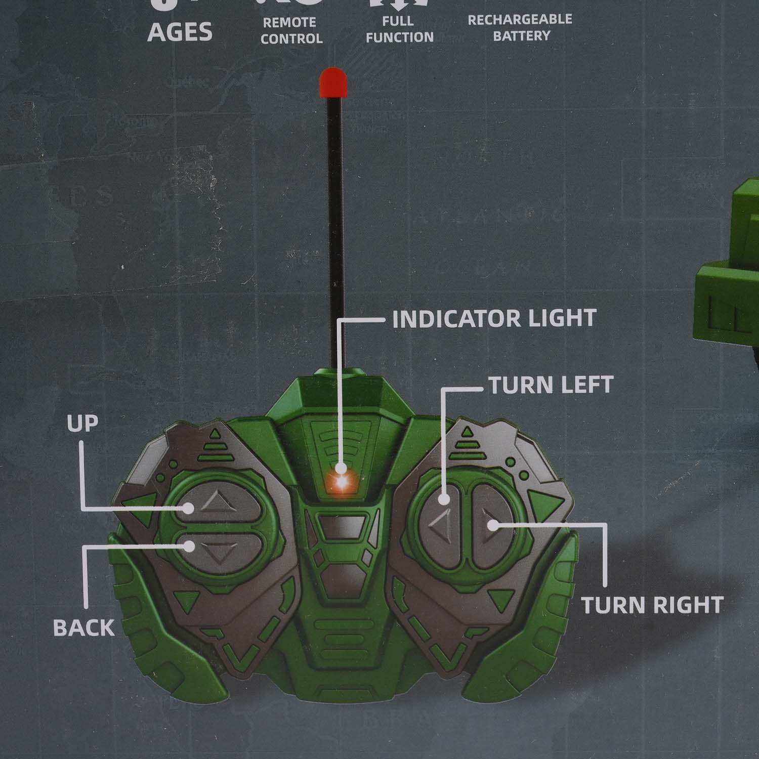 Authentic Military Design: Finished in army green with molded details and a mounted missile-style top for an adventurous look.