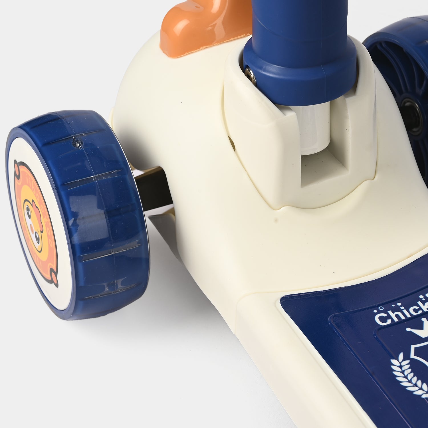 Perfect for little explorers aged 4 and above, this Blue Chick-themed scooty features a sturdy frame, large wheels, adjustable handlebars, a foldable design, a non-slip deck, soft handle grips, and built-in lights for a safe, comfortable, and exciting ride. Dimensions: 22 x 20 inches.