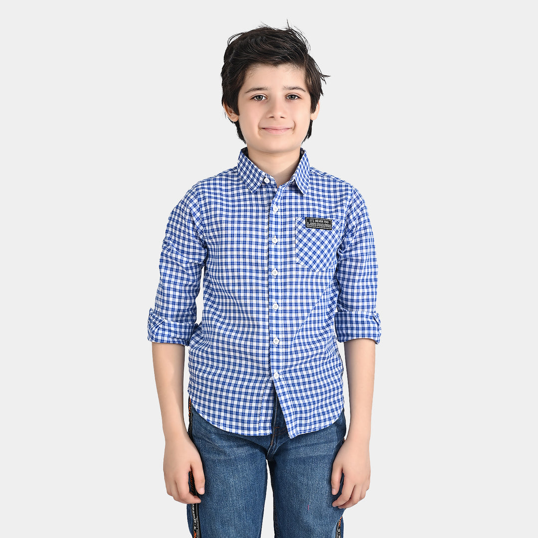 Boys Oxford Casual Shirt H/S (98)-White/Sky Blue