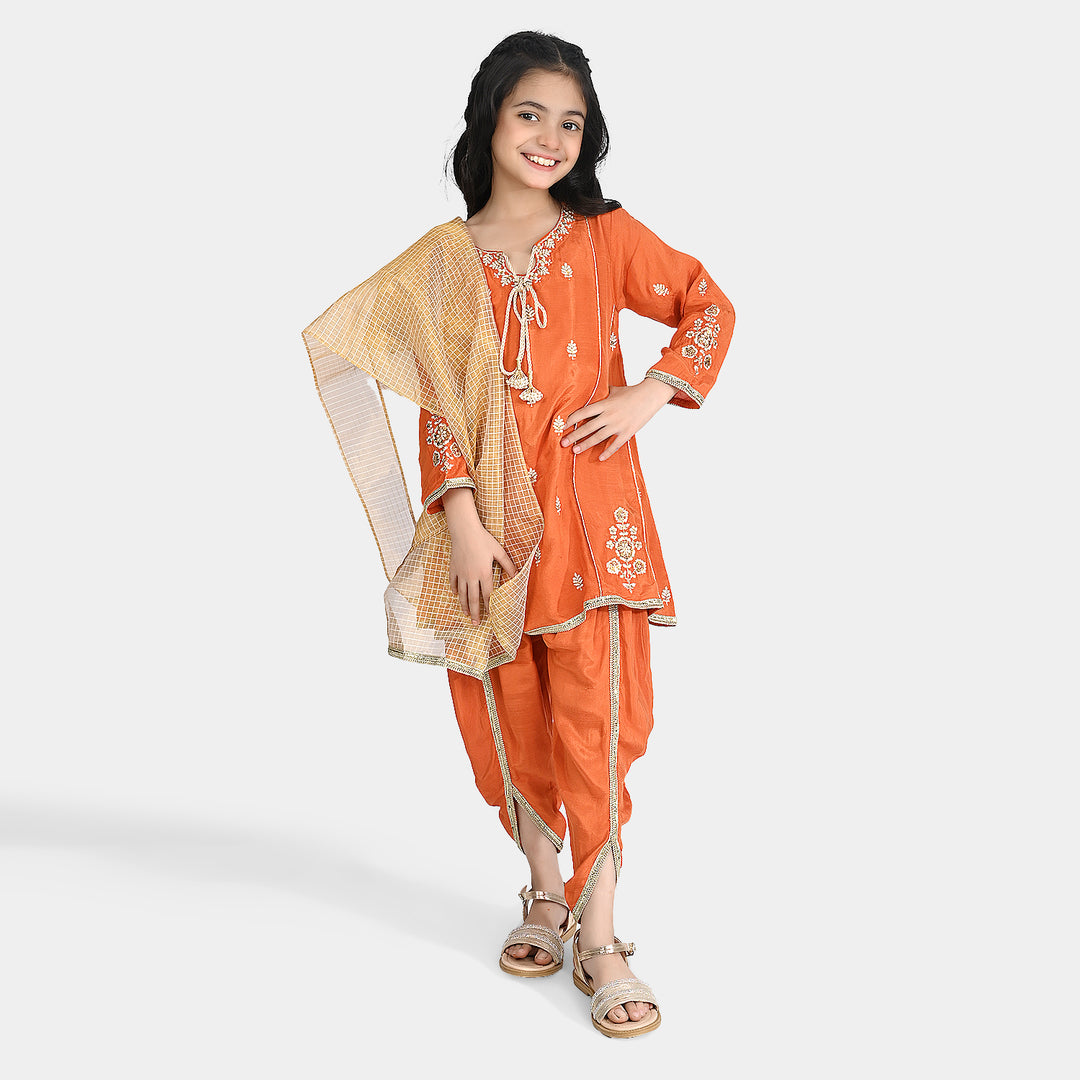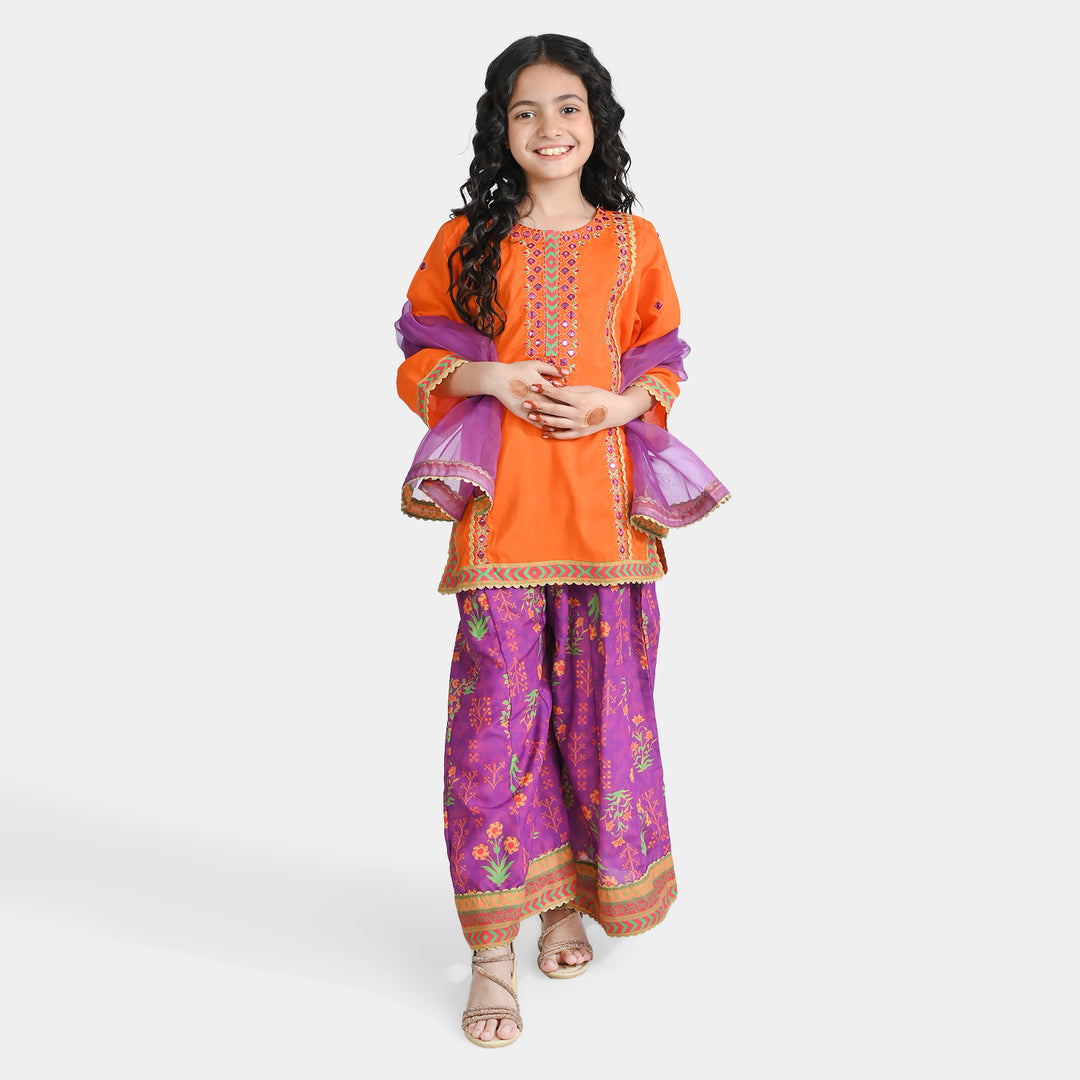 Girls poly cambric Printed 3Pcs Chamak Dhamak-Red