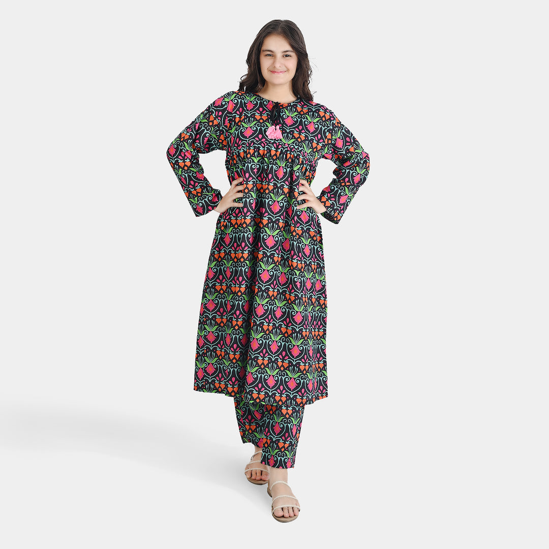 Girls Cotton Poplin Printed 2Pcs Black Beauty-Multi