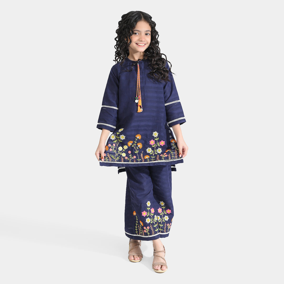 Girls Poly Cambric Printed 2Pcs Suit Floral-Multi