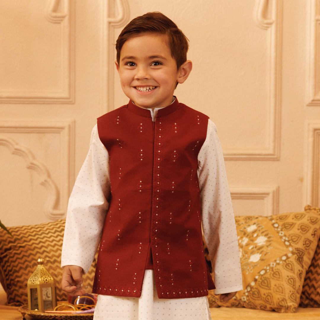 Boys Poly Viscose 3-Piece Suit (Classic)-RED/BLACK