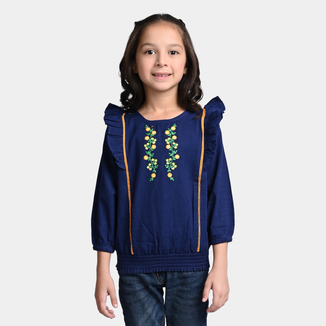 Girls Cotton Poplin Printed Kurti Blocking-Multi