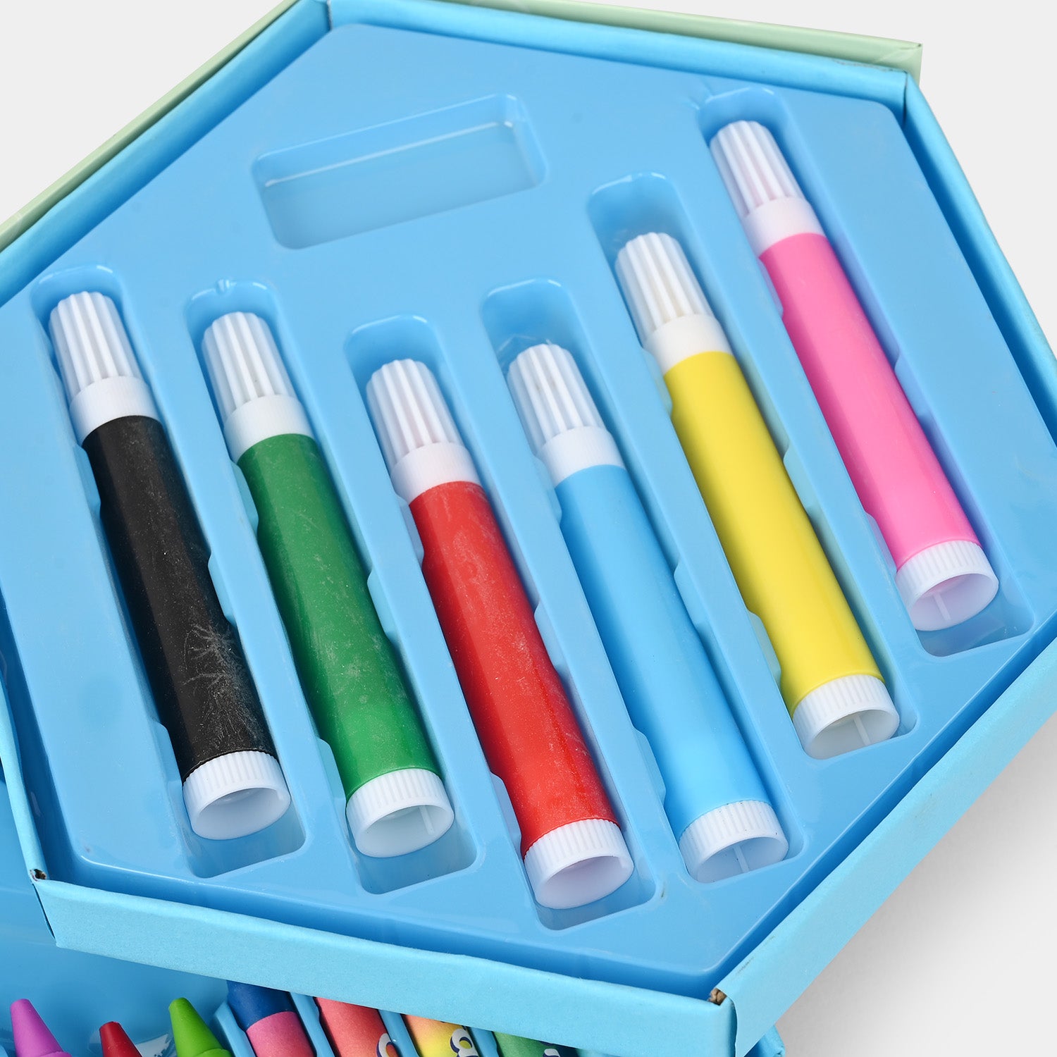 This Color Kit of 46 PCs is a comprehensive set that brings creativity to life! Whether sketching, coloring, or creating unique characters, this kit provides the perfect palette for expressing art. It includes markers, water paints, crayons, brushes, and much more.