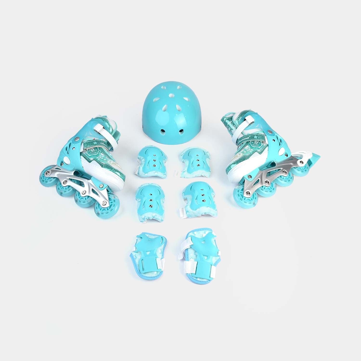Turn every skating session into an epic adventure with this Complete Skating Shoes Set! It comes packed with everything your little skater needs: aΒ helmet, elbow pads, knee pads, and wrist guards. The skates feature smooth-rolling wheels and an adjustable fit. With safety gear thatβs tough yet comfy, kids can practice tricks and roll with confidence.