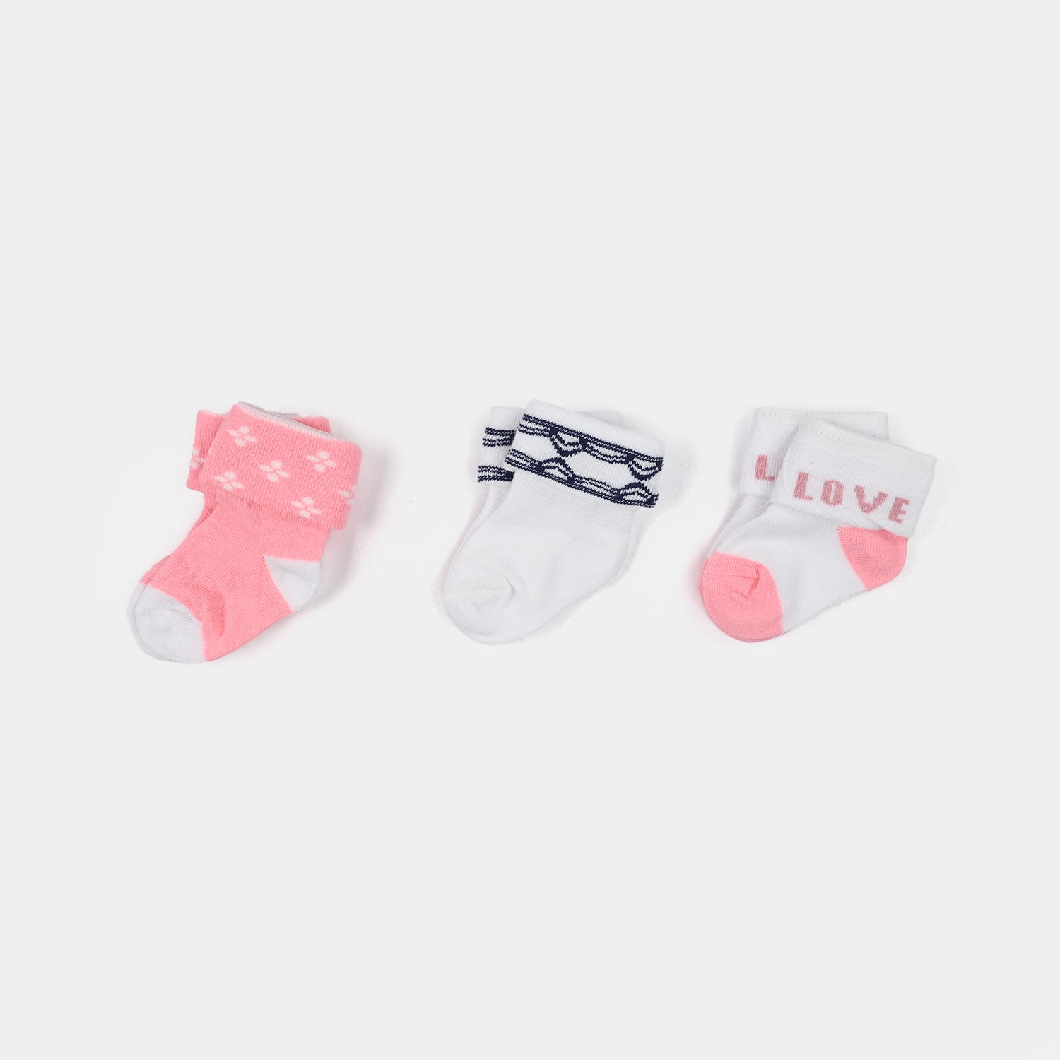 Keep those tiny toes cozy with this set of three pairs of cute socks. With three different prints to choose from, dressing up has never been more fun.