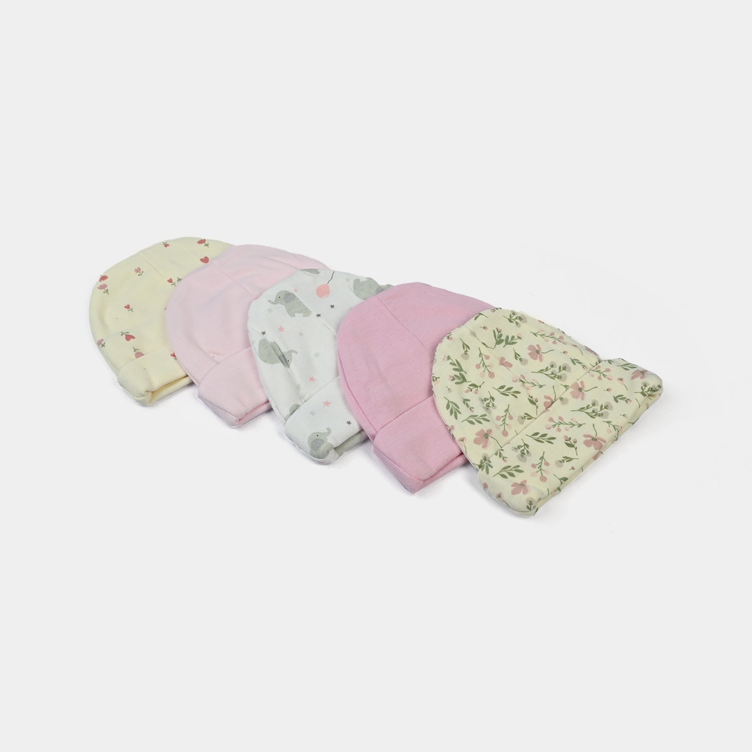 Set of five soft baby caps to shield your little one's delicate head and ears. It is comfortable and gentle on the head preventing any irritation.