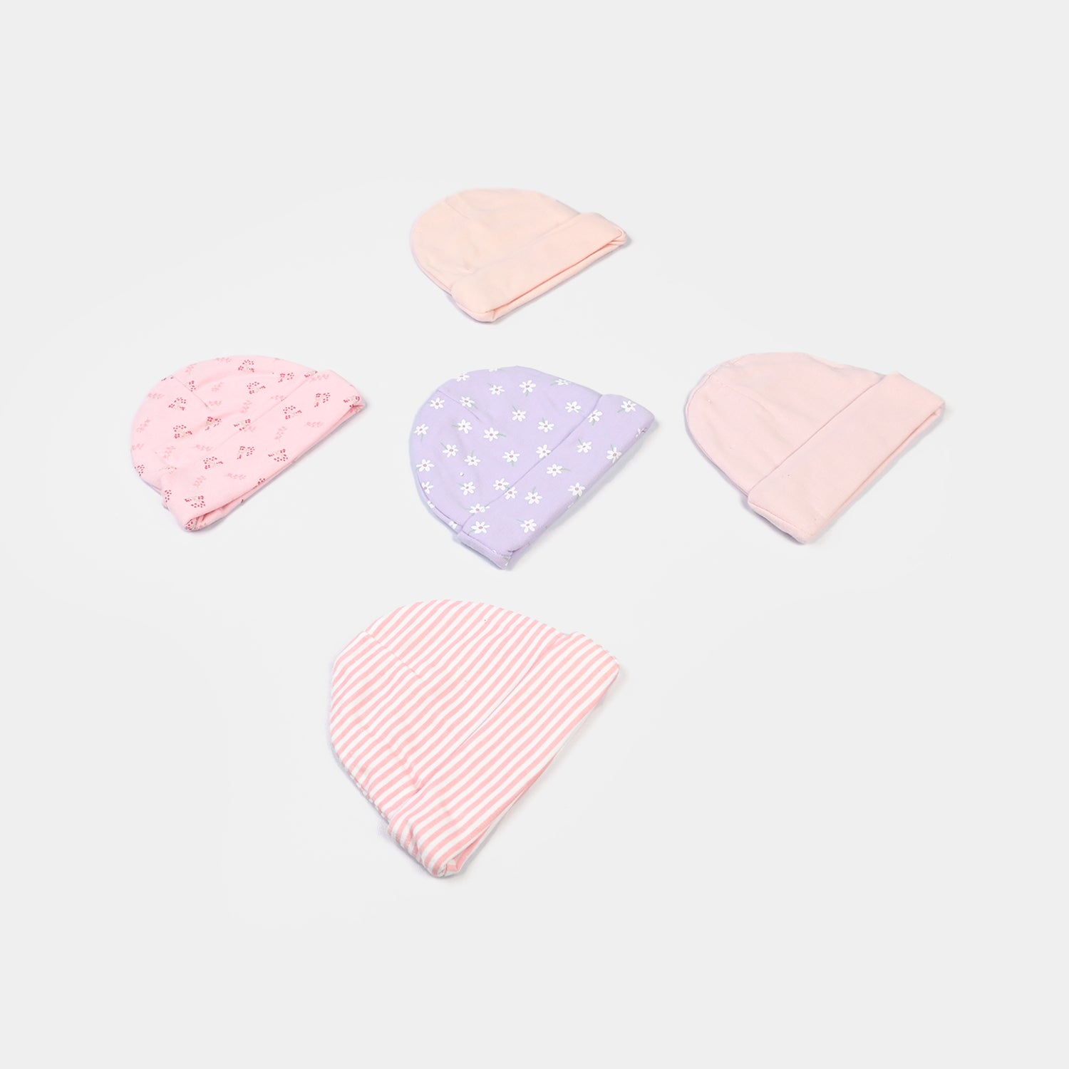 Set of five soft baby caps to shield your little one's delicate head and ears. It is comfortable and gentle on the head preventing any irritation.