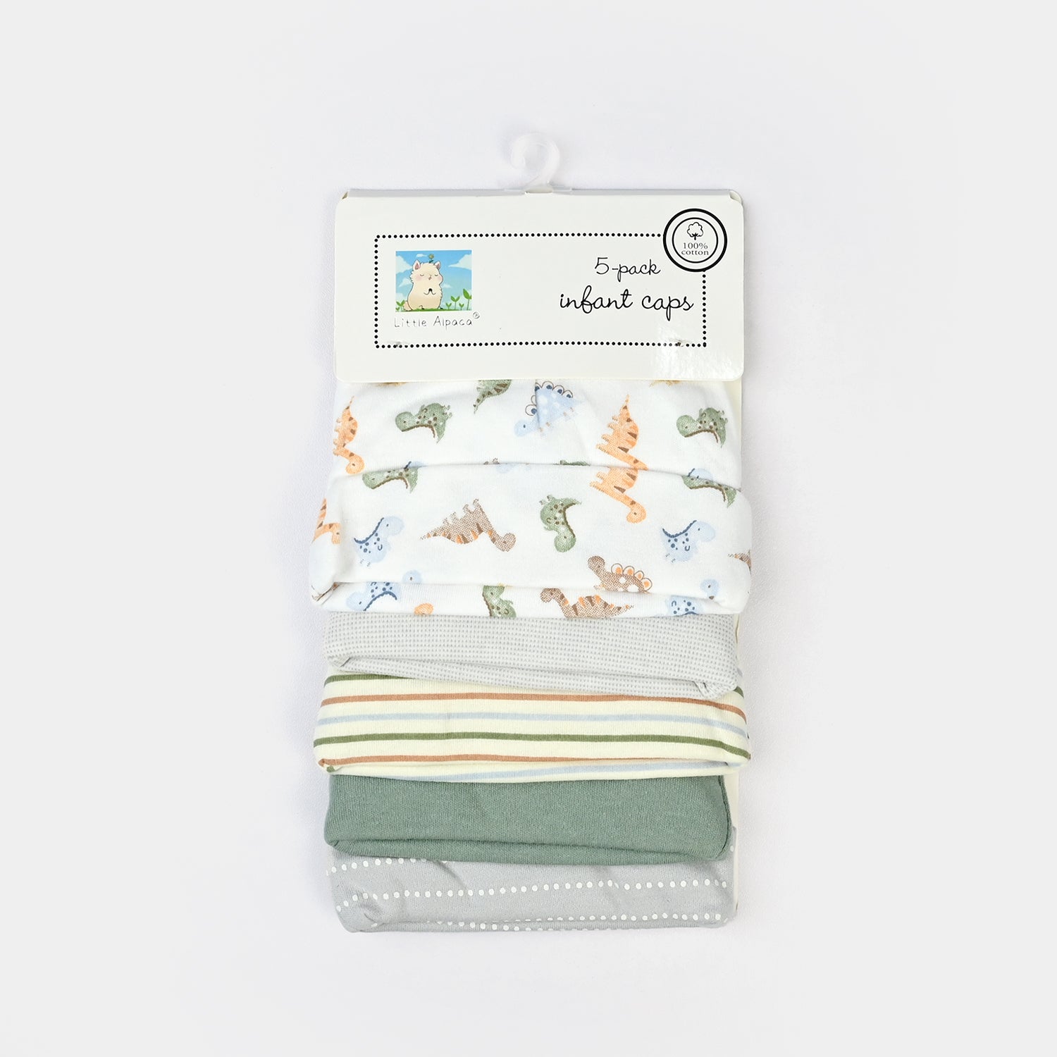 Set of five soft baby caps to shield your little one's delicate head and ears. It is comfortable and gentle on the head preventing any irritation.