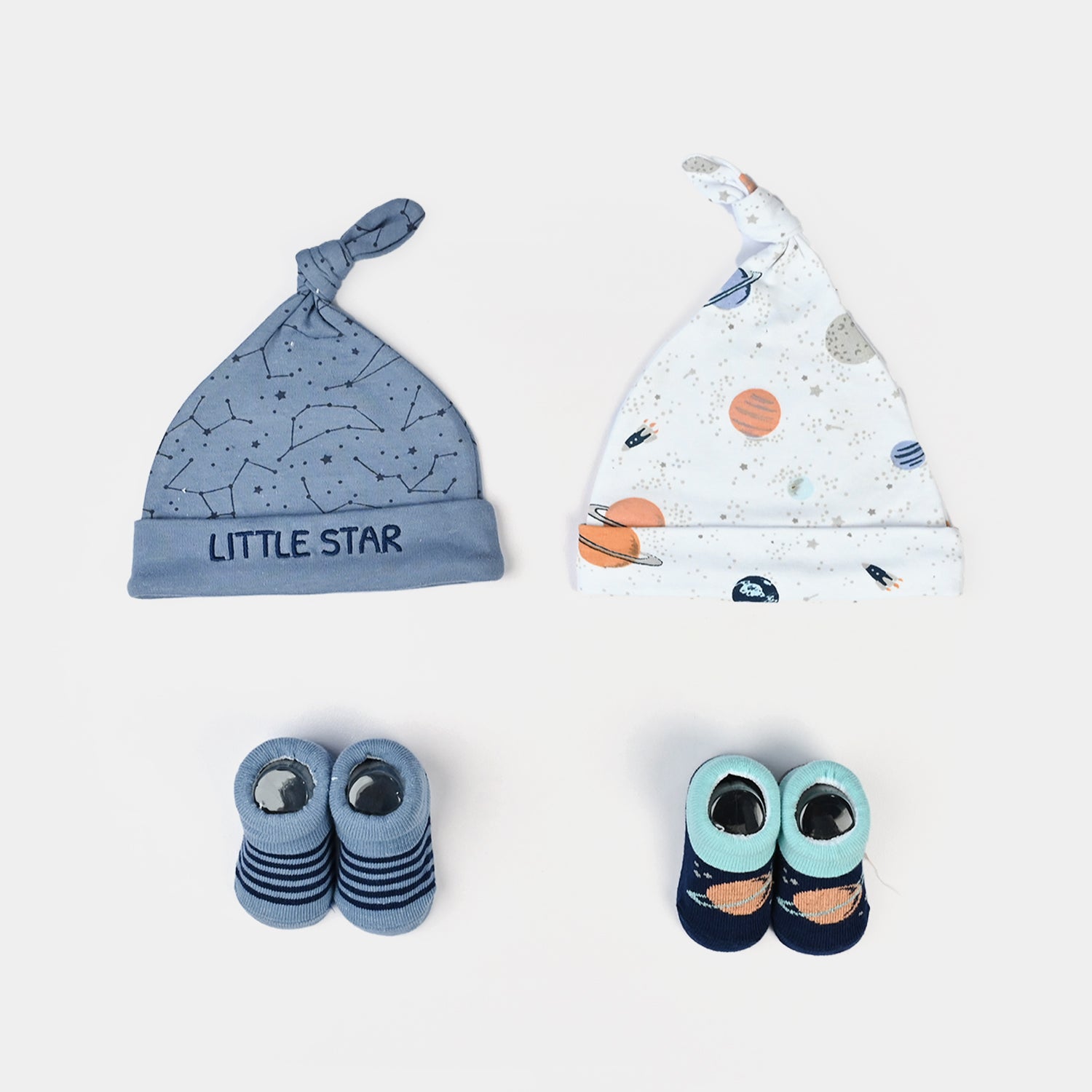 This 4-piece set features charming essentials designed for 0M+. It includes a stylish baby cap and cozy booties that keep little feet warm, perfectly finishing the ensemble for your young trendsetter.