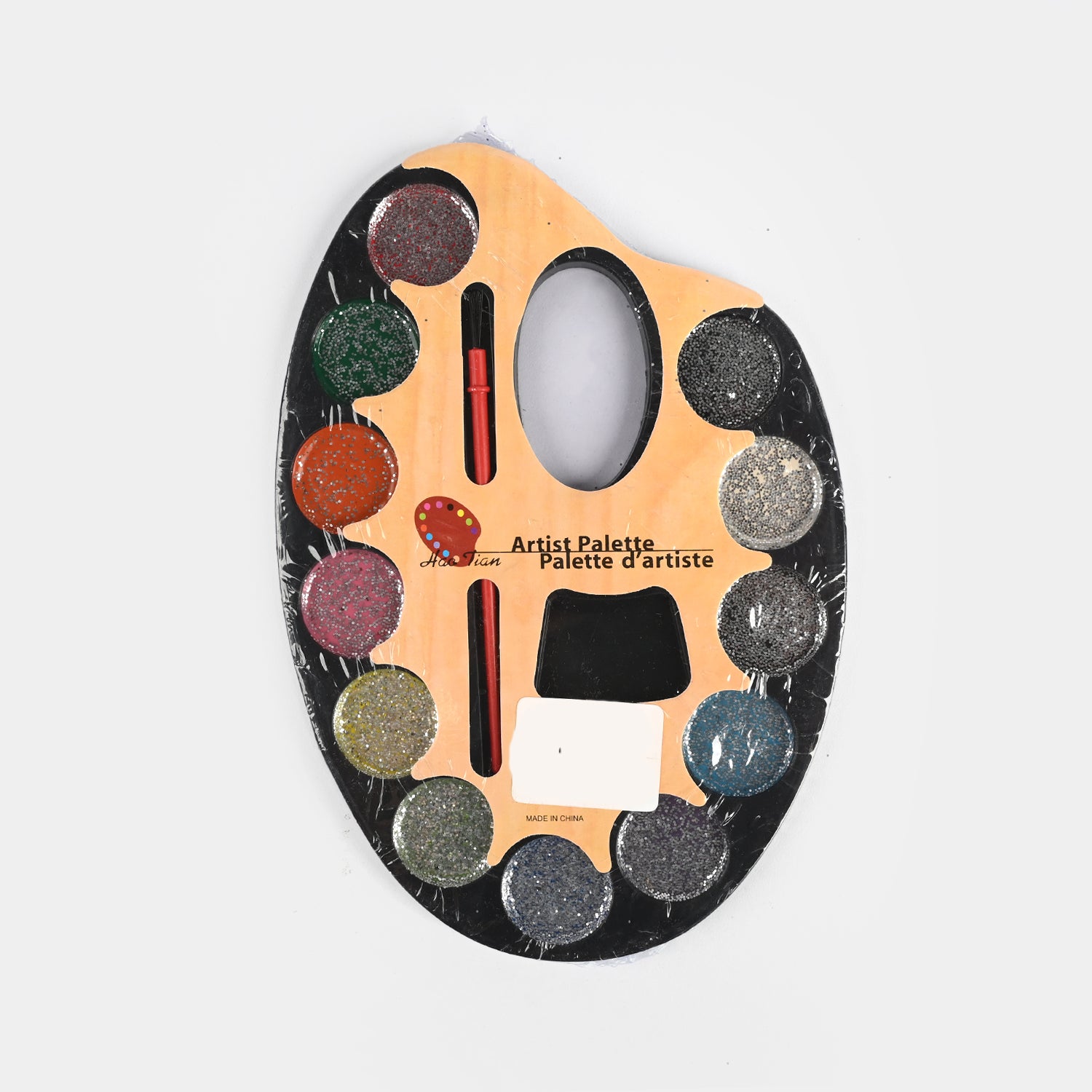 Glittery watercolor palette with colors that blend smoothly and shimmer beautifully on paper. It inspires creativity and brings a bit of magic to every brushstroke.
