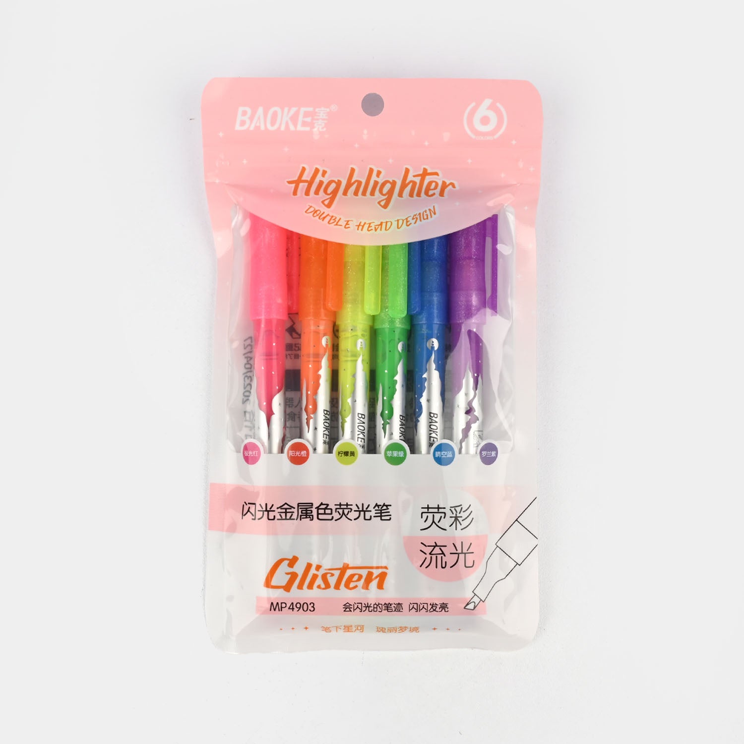 Make your notes brighter and more stylish with this premium 6-piece double-head highlighter set. Each highlighter features a smooth, metallic-style ink that delivers vibrant, eye-catching lines—perfect for school, office, journaling, and creative projects. The dual-tip design offers versatility, allowing you to switch between bold highlighting and fine underlining with ease.