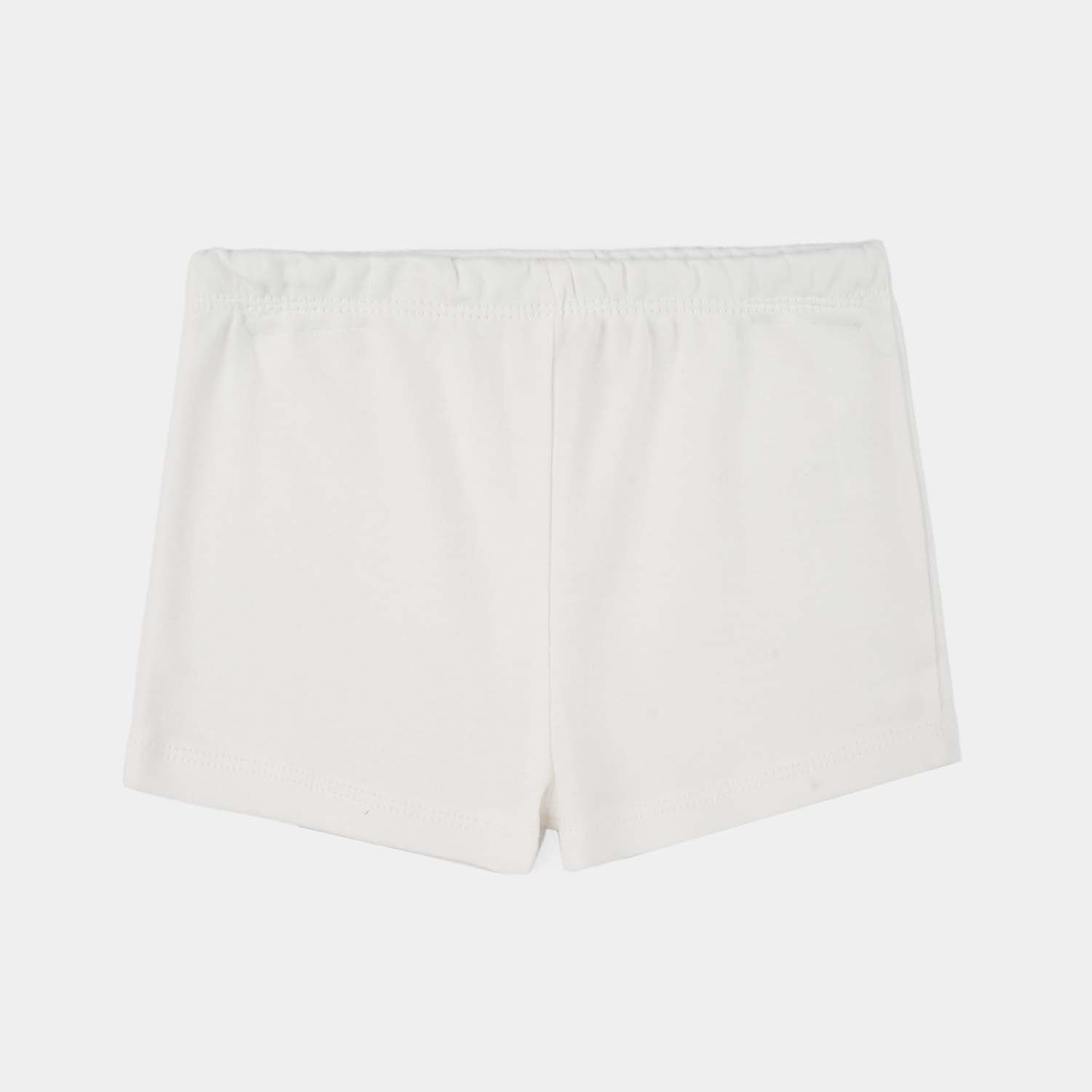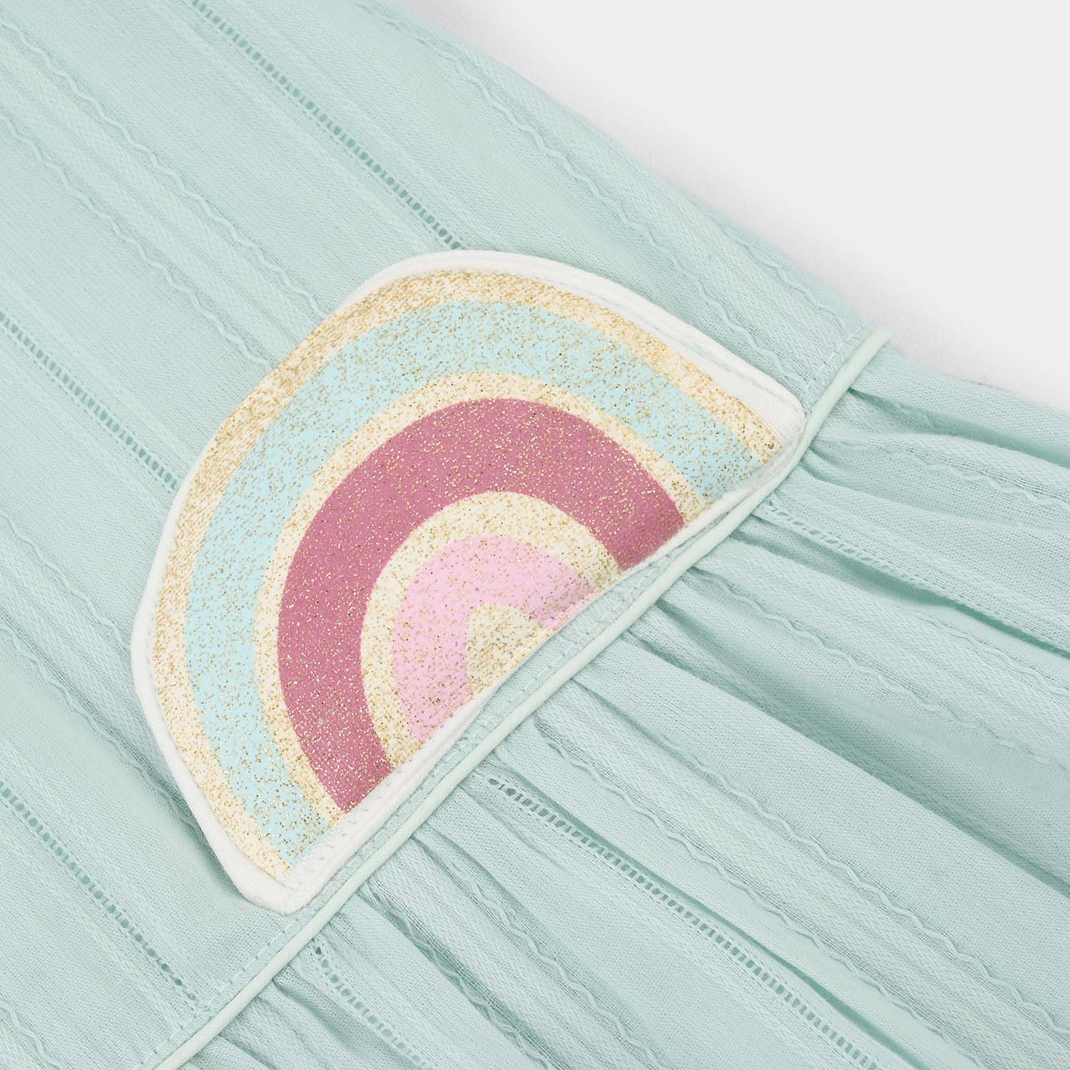 Infant girls' green jersey terry 2-piece suit featuring a round neck top and rainbow detailing on the front with short sleeves and shorts, perfect for a cute and comfortable everyday look.