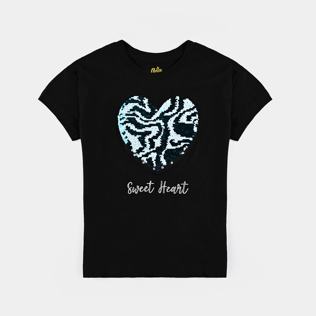 Girls Cotton Jersey T-Shirt H/S Sweet Heart-BLACK