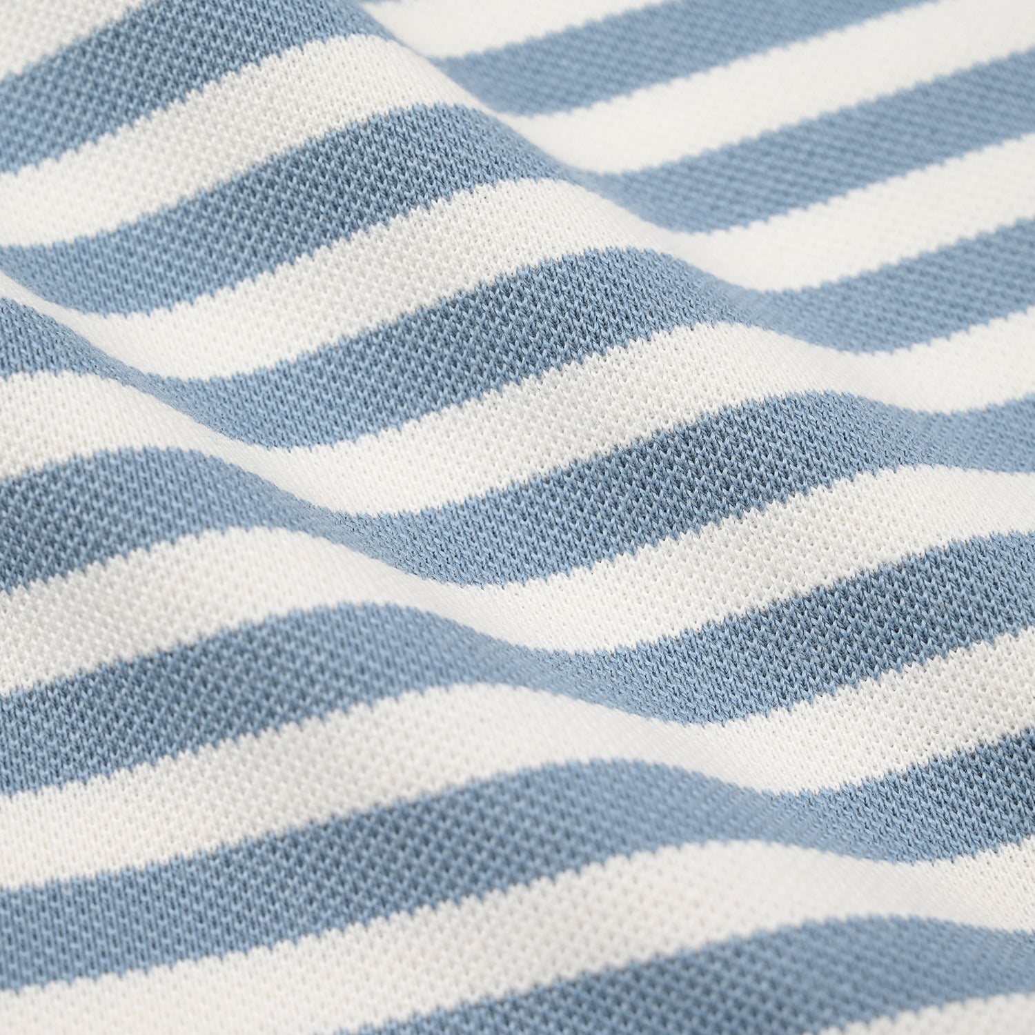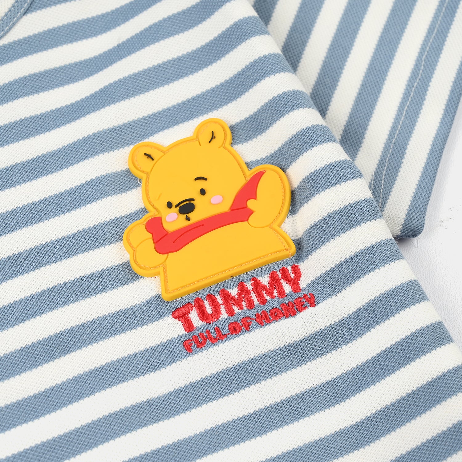 Infant boys’ yarn-dyed round neck T-shirt in blue, featuring “POOH” graphic and striped pattern with a round neck and half sleeves.