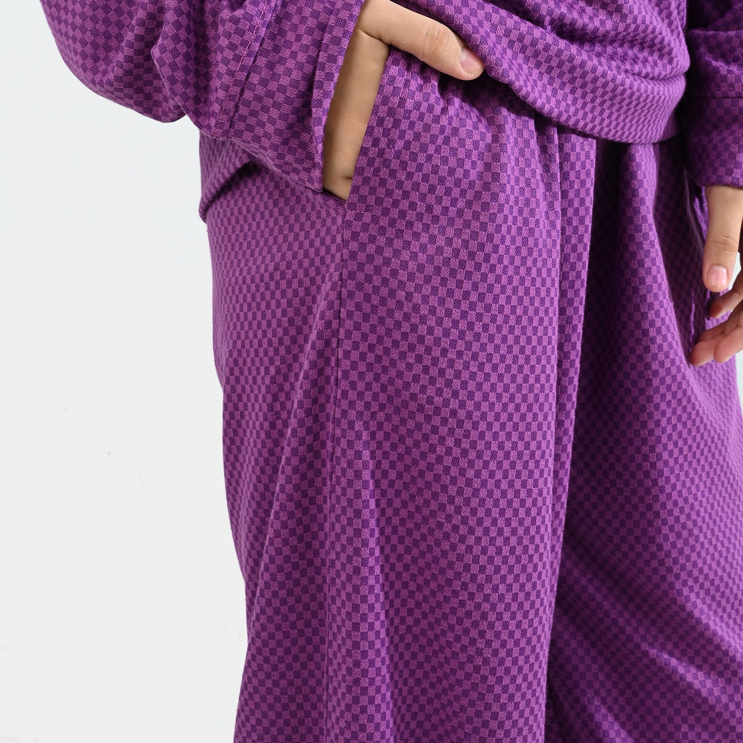 Everyday comfort meets adorable style with this cozy set. It includes a shirt with zip placket, paired with trousers for everyday relaxed wear.