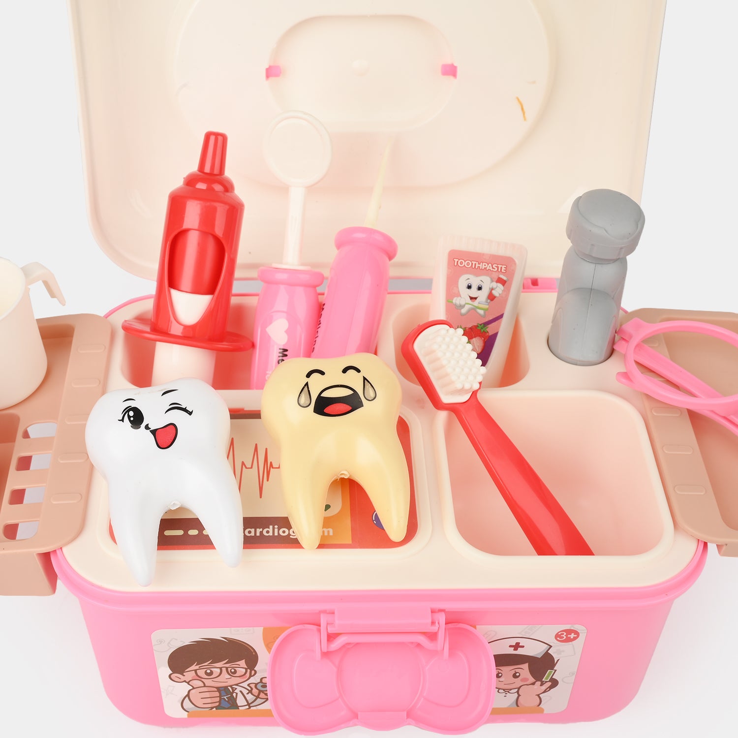 This dentist-themed playset is designed to simulate a real dental check-up experience for kids. The portable carrying case unfolds into a mini dental station, often resembling a sink or work area, for realistic role-play.