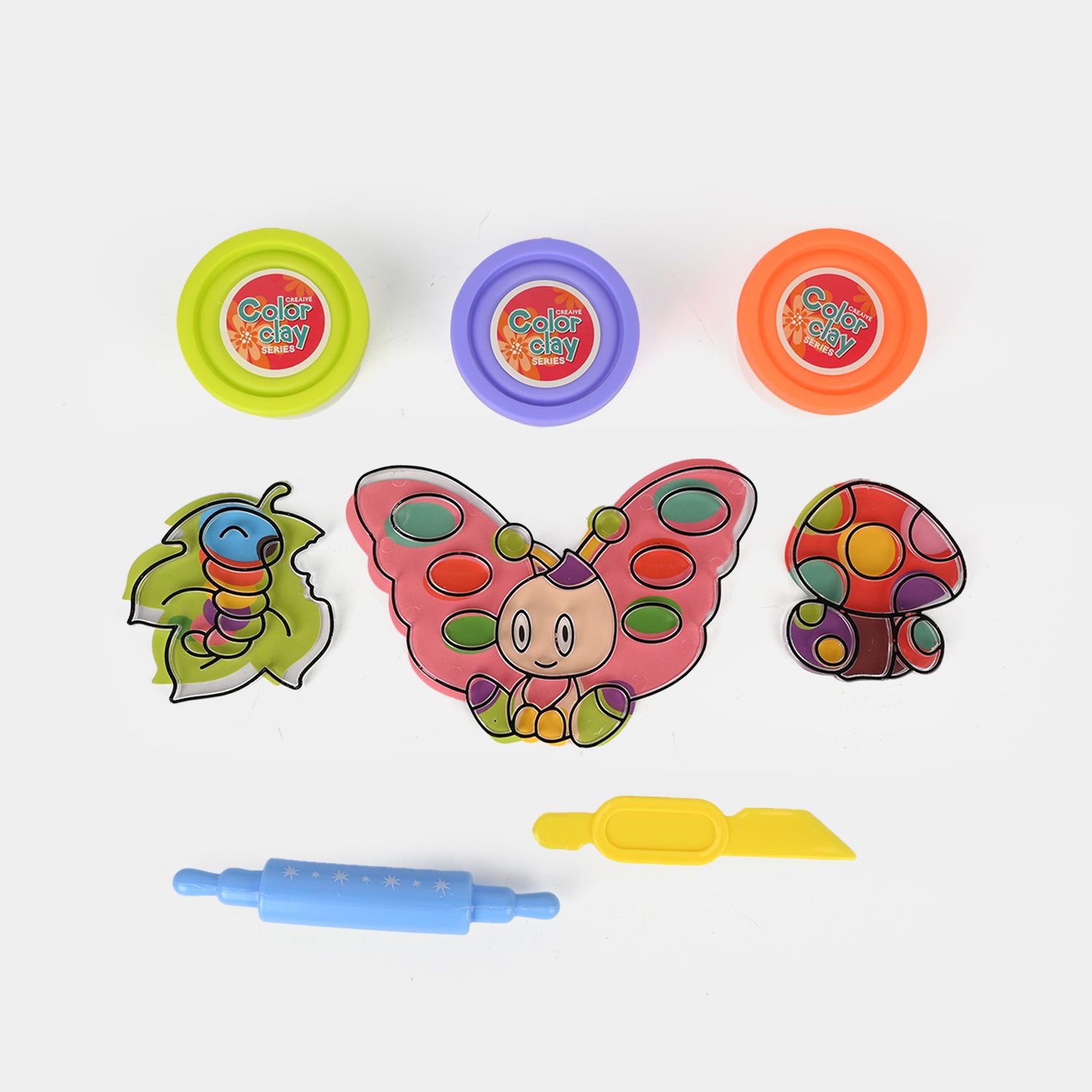 This doll set includes colorful clay, molds for insects and butterflies, and a doll figure. It encourages creative, hands-on play and offers simple color mixing guidance.