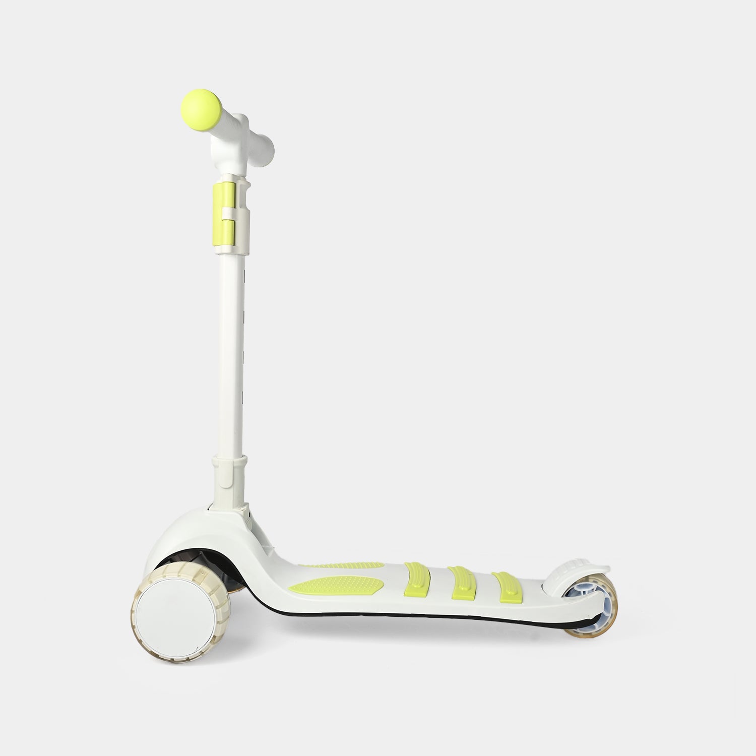 Perfect for little explorers aged 4 and above, this Yellow Smiley-themed scooty features a sturdy frame, large wheels, adjustable handlebars, a foldable design, a non-slip deck, soft handle grips, and built-in lights for a safe, comfortable, and exciting ride. Dimensions: 22 x 20 inches.