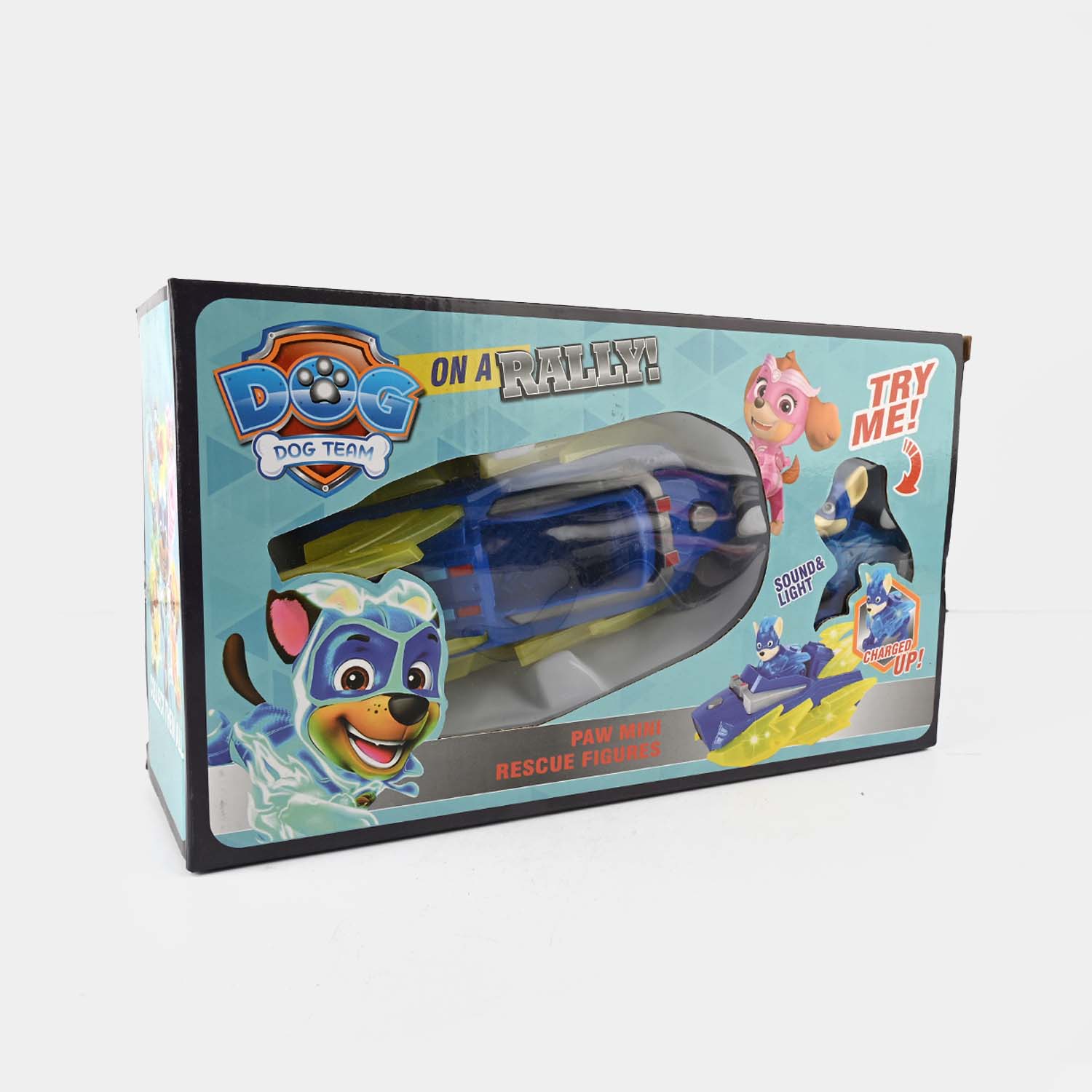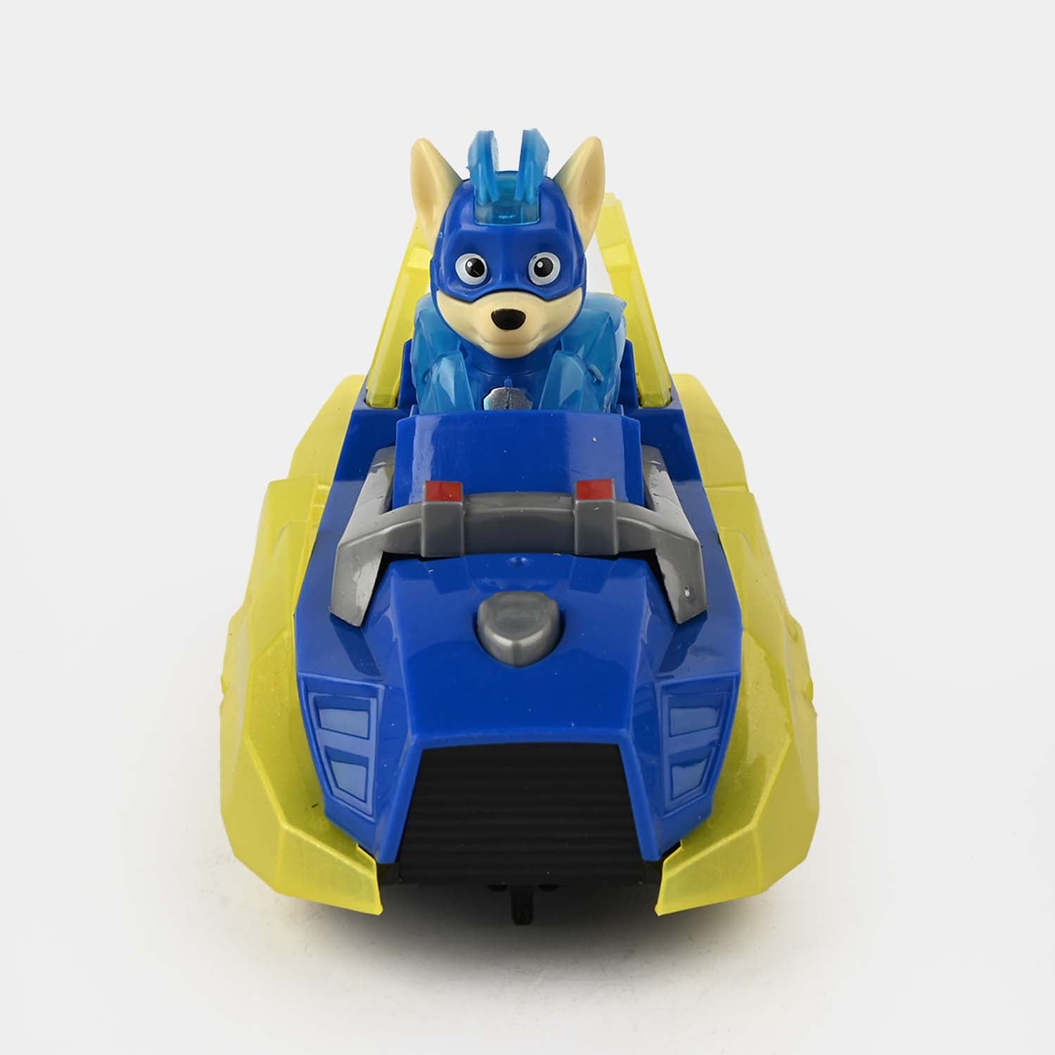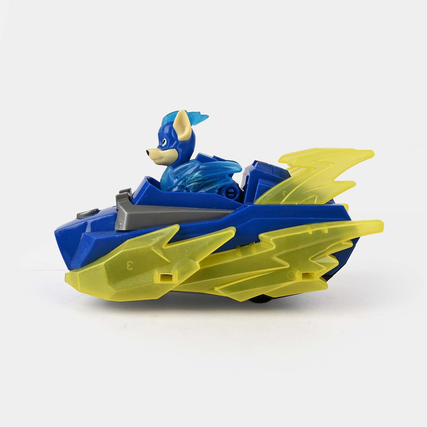 A bright game set of the character of the popular animated series "Paw Patrol". Includes a Zoom figure and a racing car. The figure can be played separately or put in a car. Made of high-quality and reliable materials. The car is equipped with sound and light effects (melody plays, backlighting), the figure has a glowing emblem on the chest. Runs on batteries, batteries included.