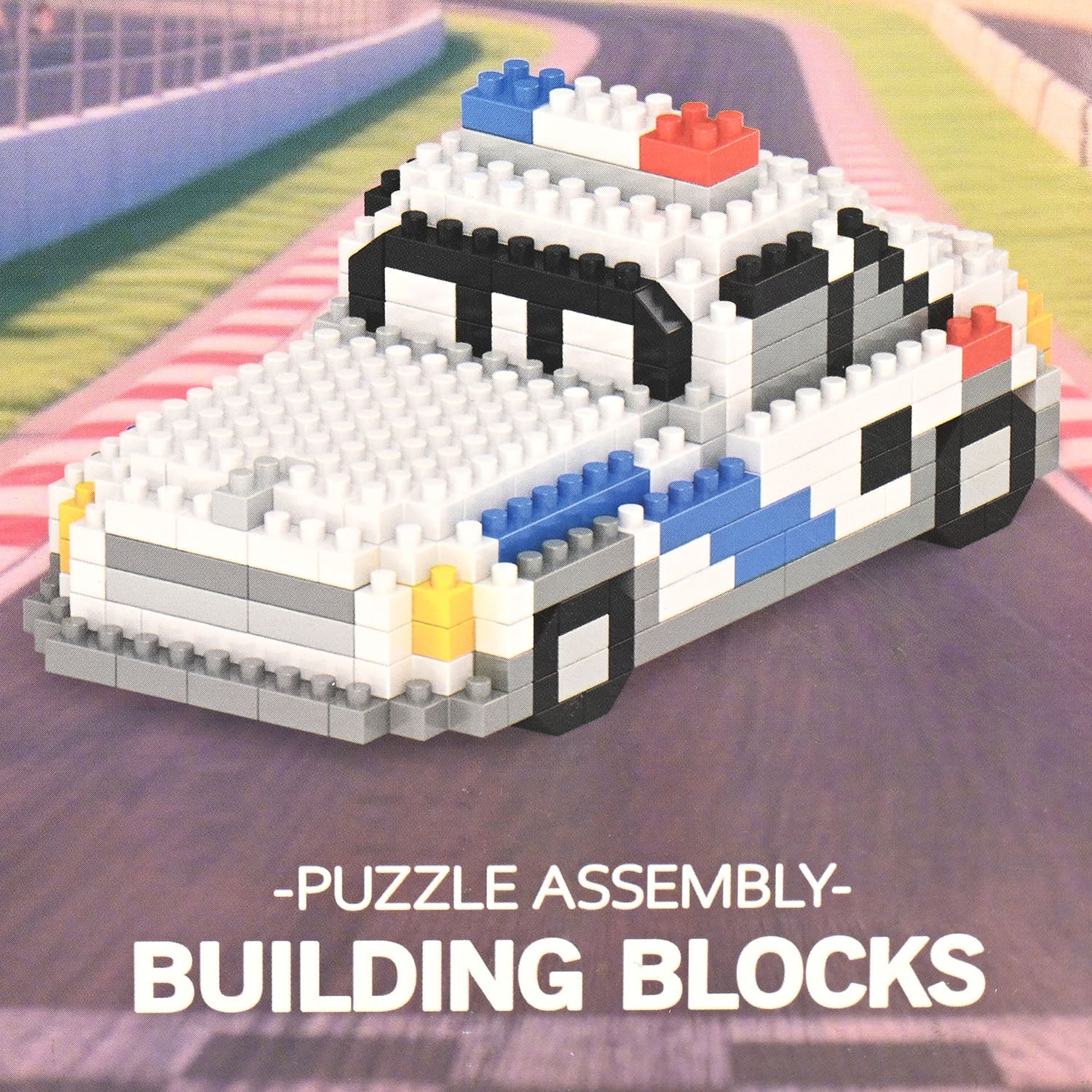 Puzzle assembly building blocks featuring a white car design, perfect for creative play and developing fine motor skills, hand-eye coordination, and problem-solving skills.