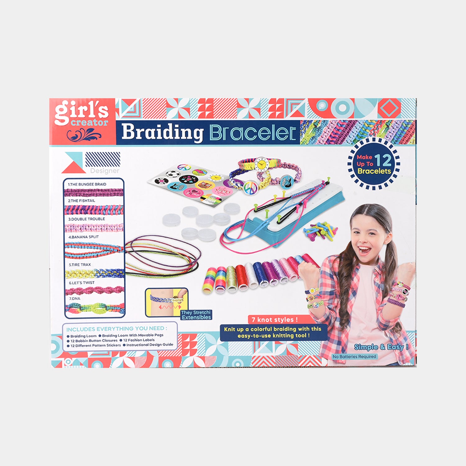 DIY Jewelry Making Kits for Girls: Includes 12 colors of bracelet threads,12 cartoon buckles, 1 bracelet loom and step by step instructions with illustrations to make 7 different styles of bracelets.