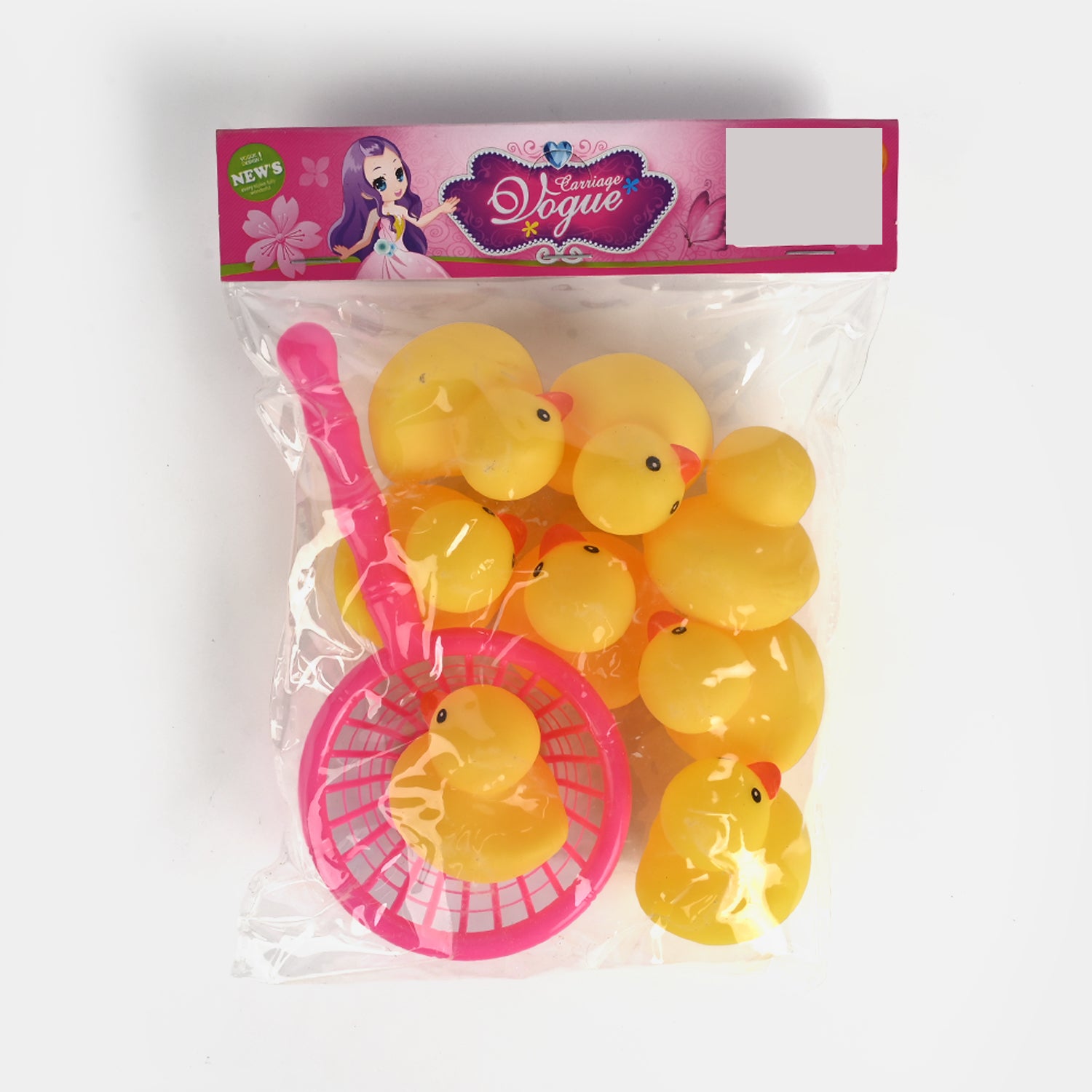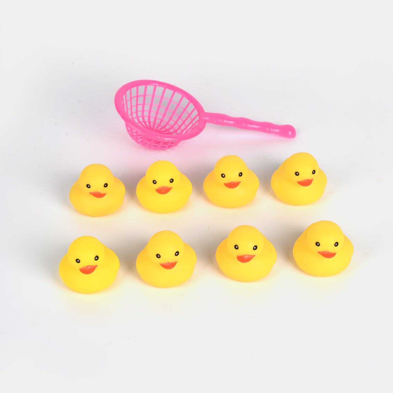 8 Vinyl Ducks, 1 Plastic Strainer Net |
